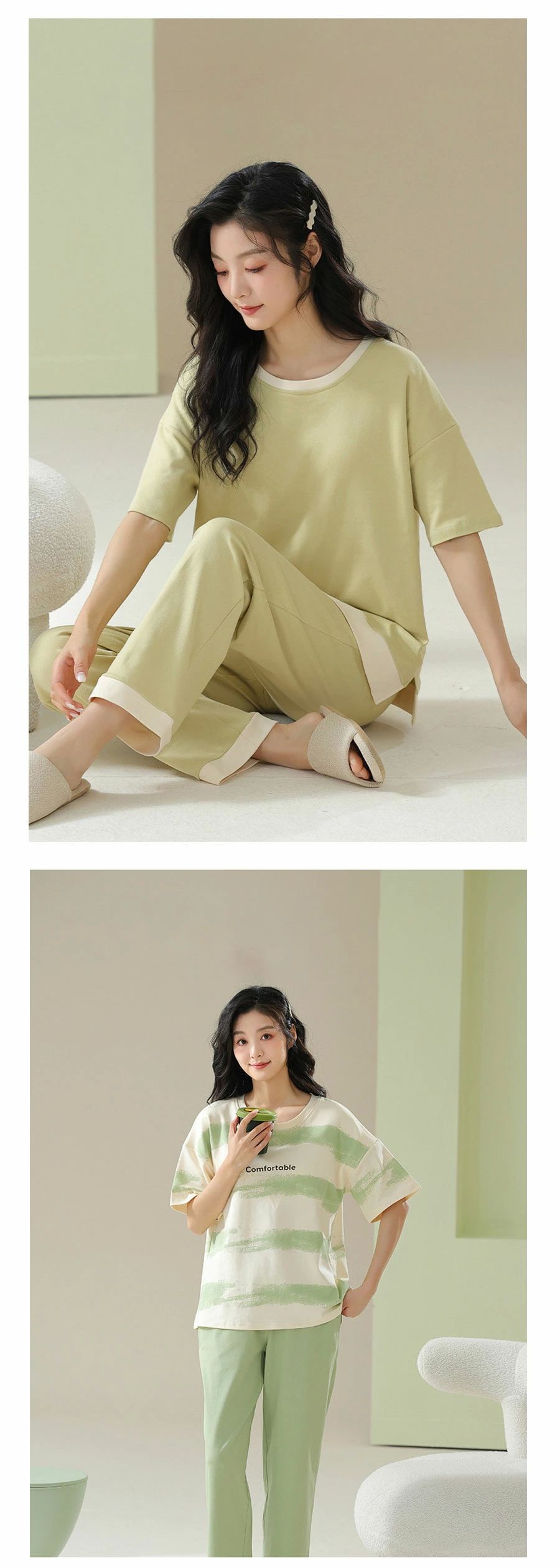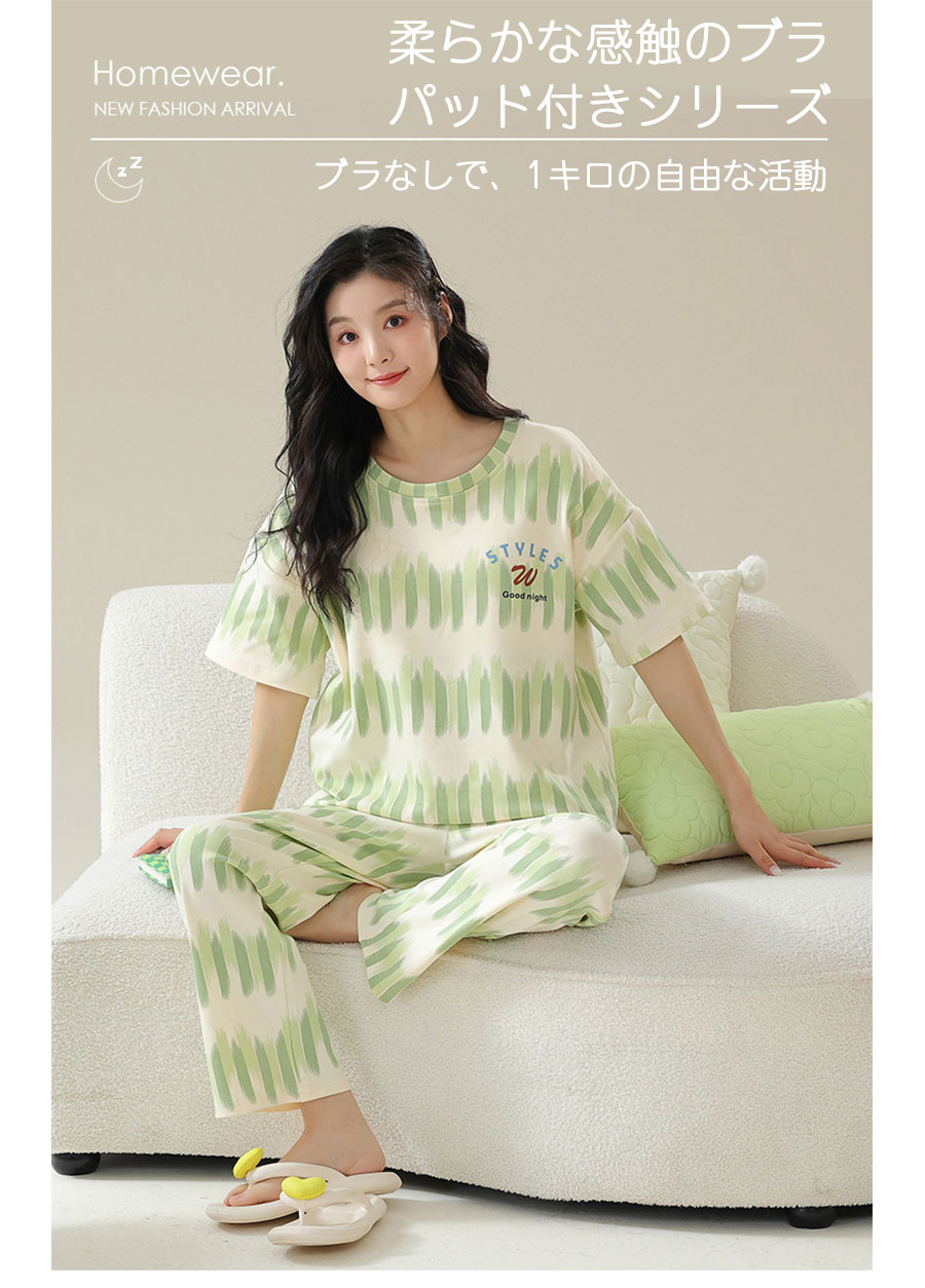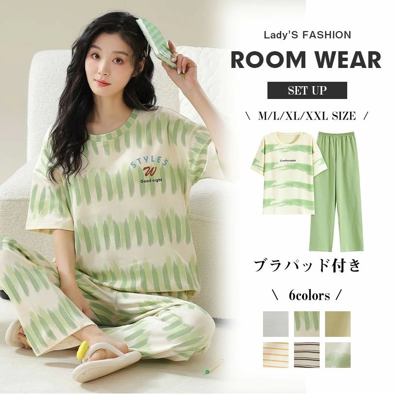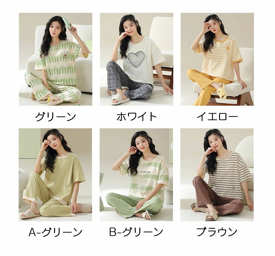パジャマ 上下2点セット 夏用パジャマ インナー 下着 ナイトウエア 新登場! グリーン ホワイト イエロー A-グリーン B-グリーン ブラウン M(40-50kg) L(50-60kg) XL(60-70kg) 2XL(70-80kg)