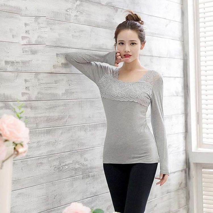薄手 レース 長袖 スクエアネック 無 レディースファッション 人気 ブラック グレー ホワイト L XL 2XL