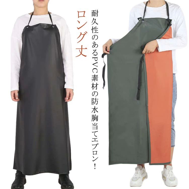 足元まであ ロング丈 防油 男性 女性 配膳用品 キッチンファブリック エプロン 三角巾 エプロン 超目玉商品 ブラック×レッド カーキ×オレンジ