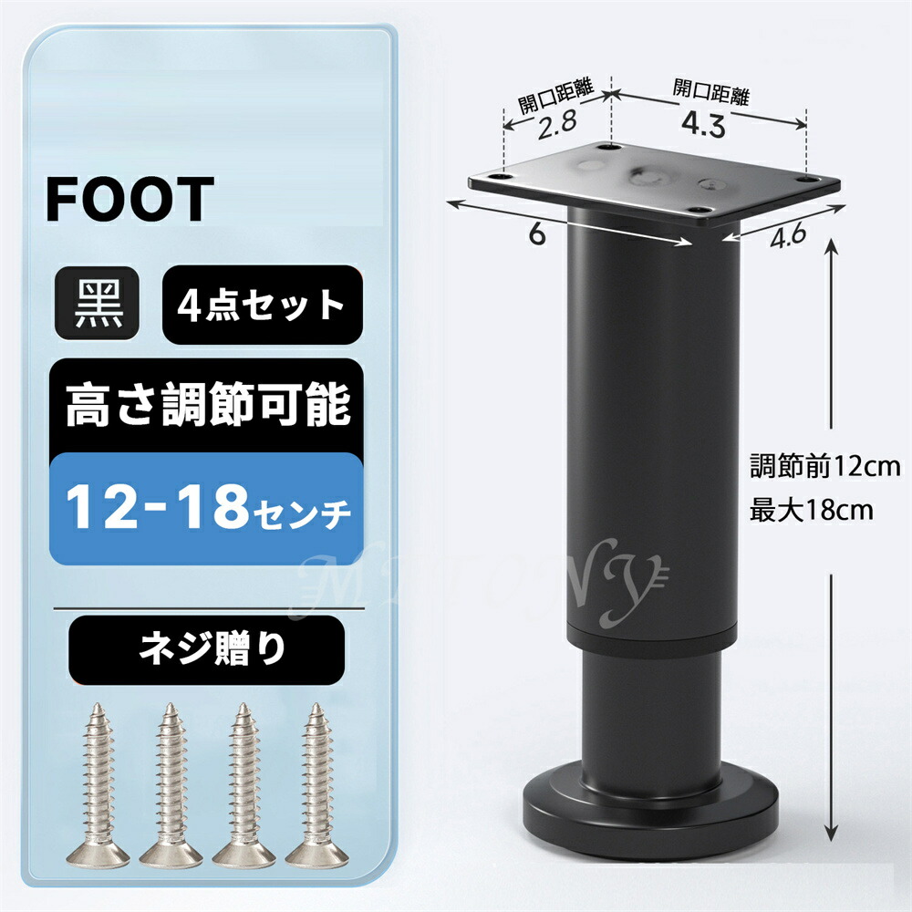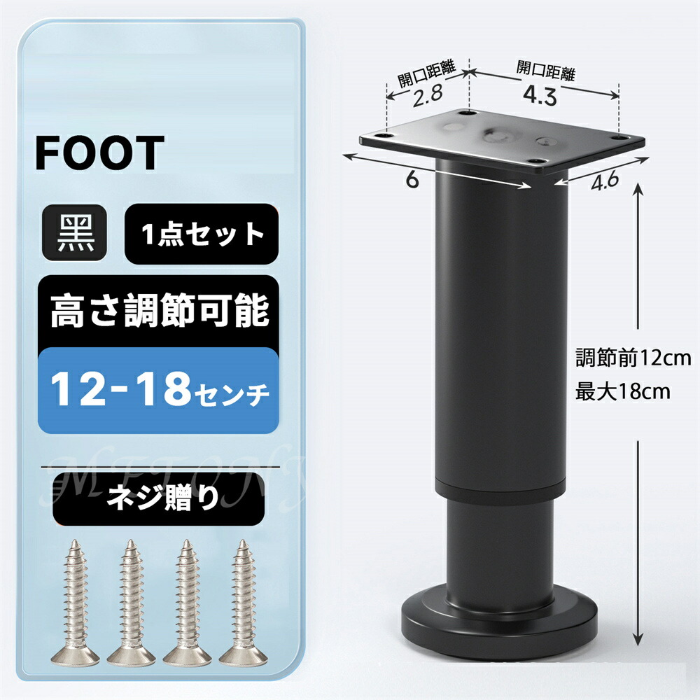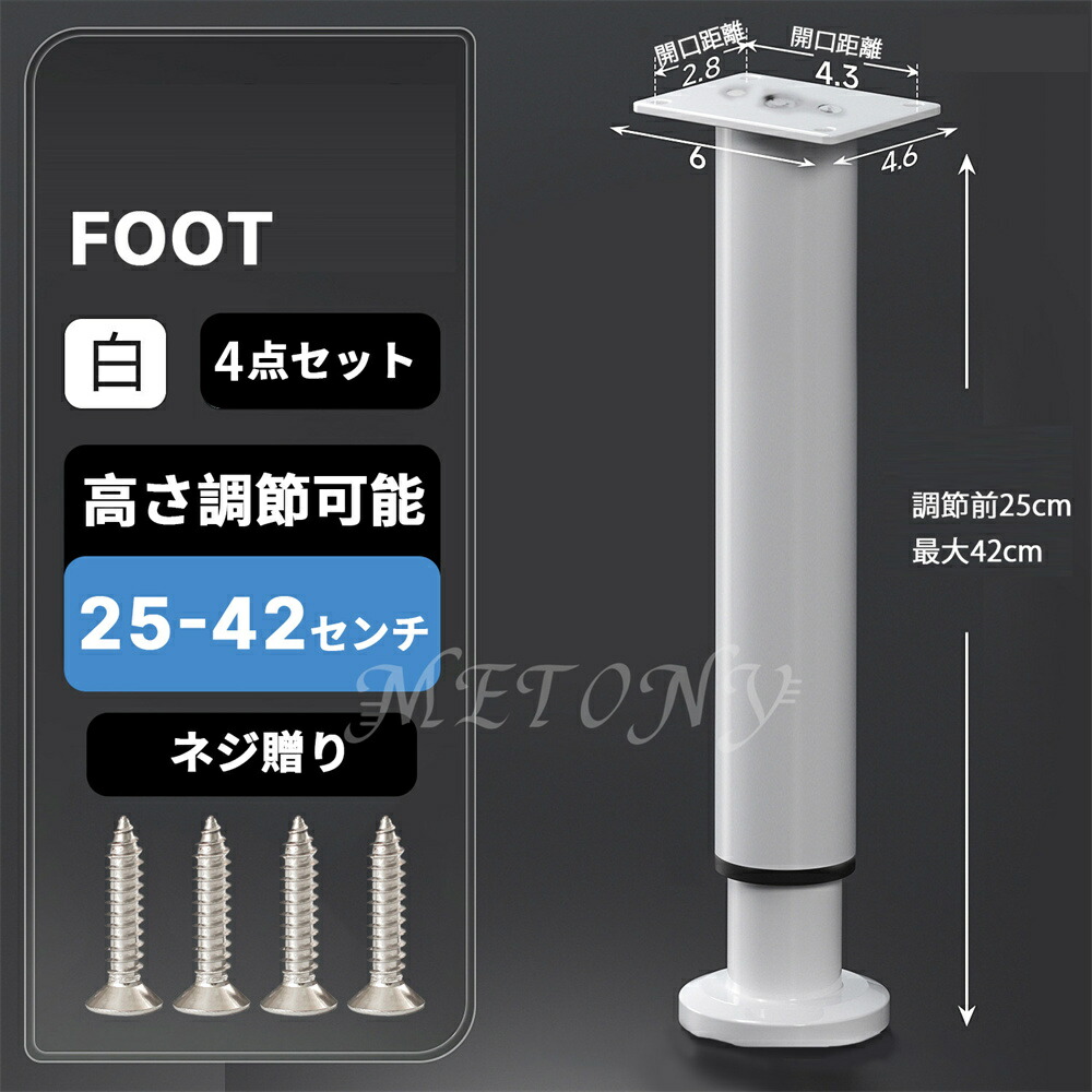 テーブル 脚 足 取り替え 継足 パー ブラック ホワイト 8センチ【8-12cm】 12センチ【12-18cm】 18センチ【18-30cm】 25センチ【25-42cm】 42センチ【42-72cm】 72センチ【72-110cm】