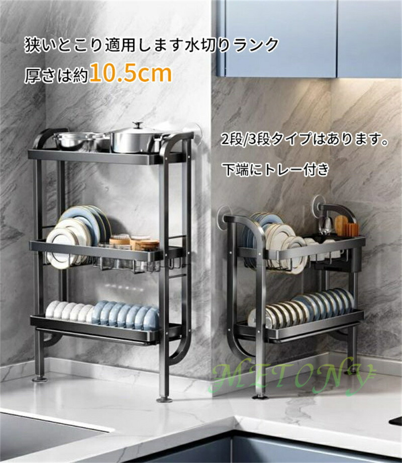 3段式 2段式 水切りラック 水切りか キッチン用品 食器 調理器具 続々登場 ブラック ホワイト 2段タイプ 3段タイプ