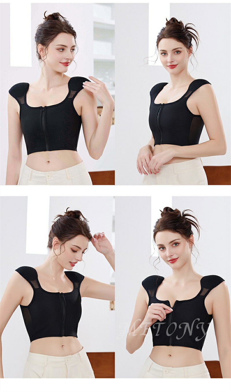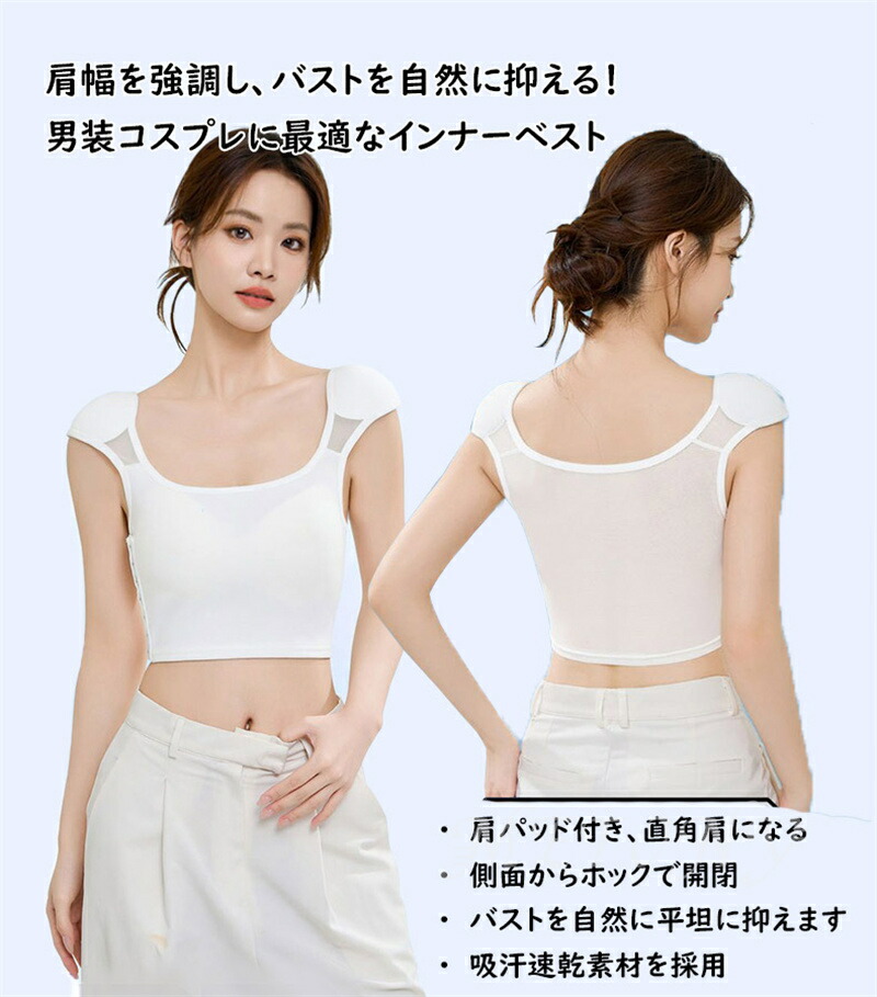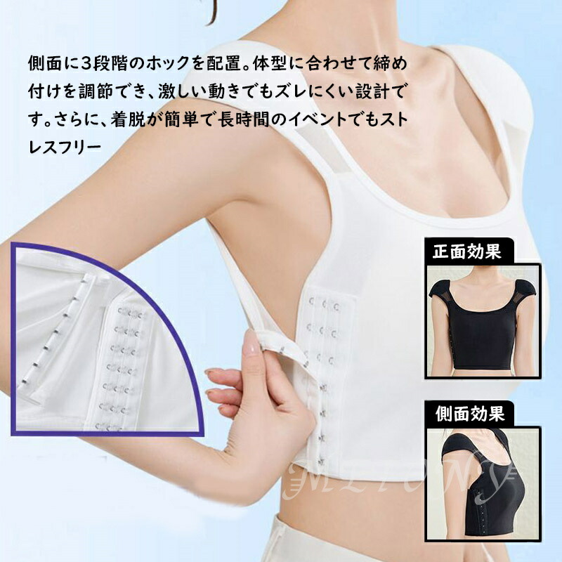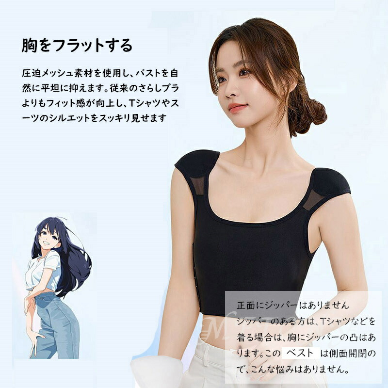 胸を小さく見せる 男装 インナー 胸つ レディース インナー 下着 ブラトップ 続々登場 A側面開閉 B正面ファスナー 黒 白