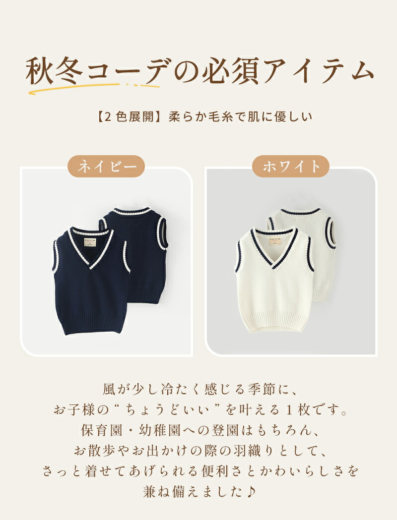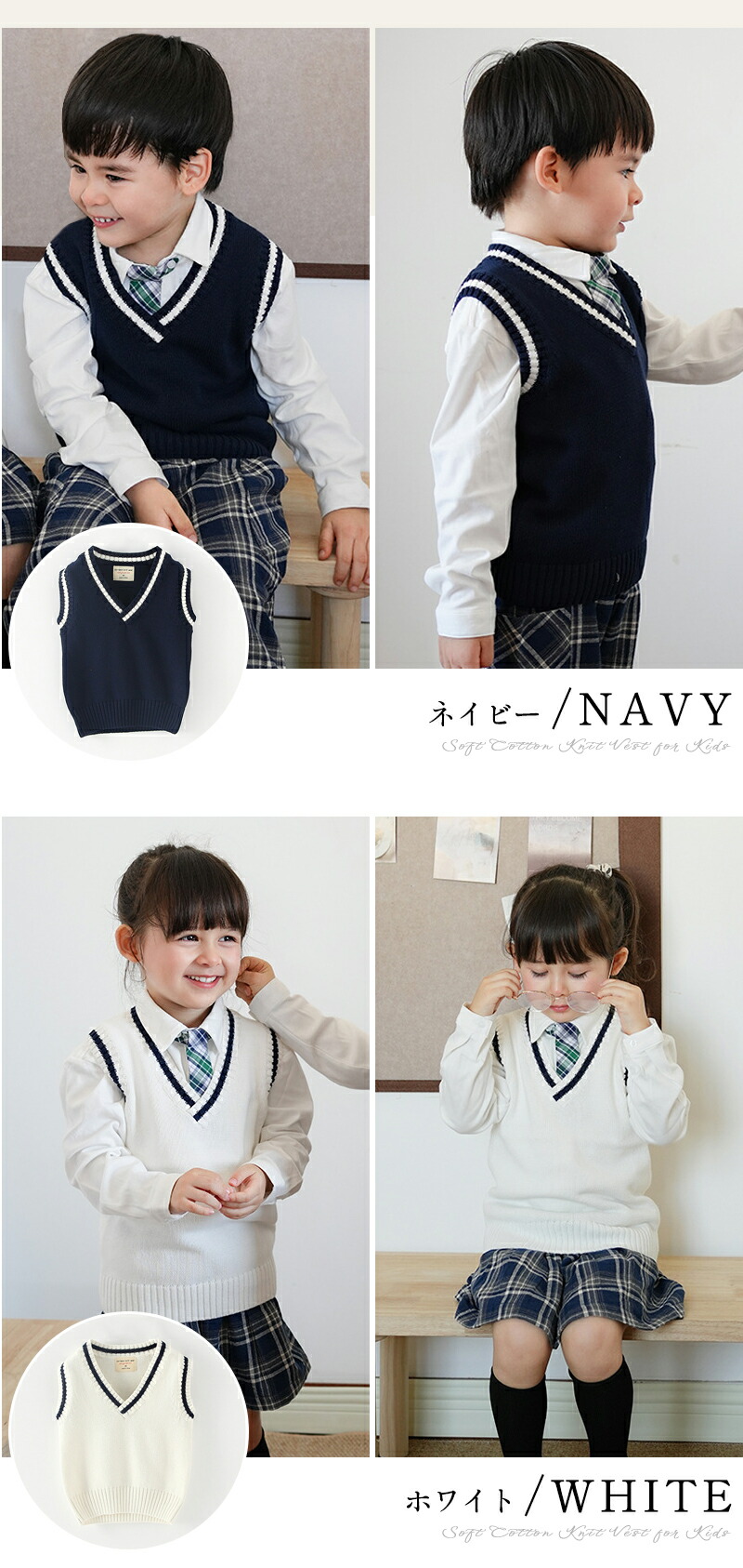 子供服 スクールベスト スクールセータ キッズ ベビー マタニティ 新登場! ホワイト ネイビー 100cm 110cm 120cm 130cm 140cm