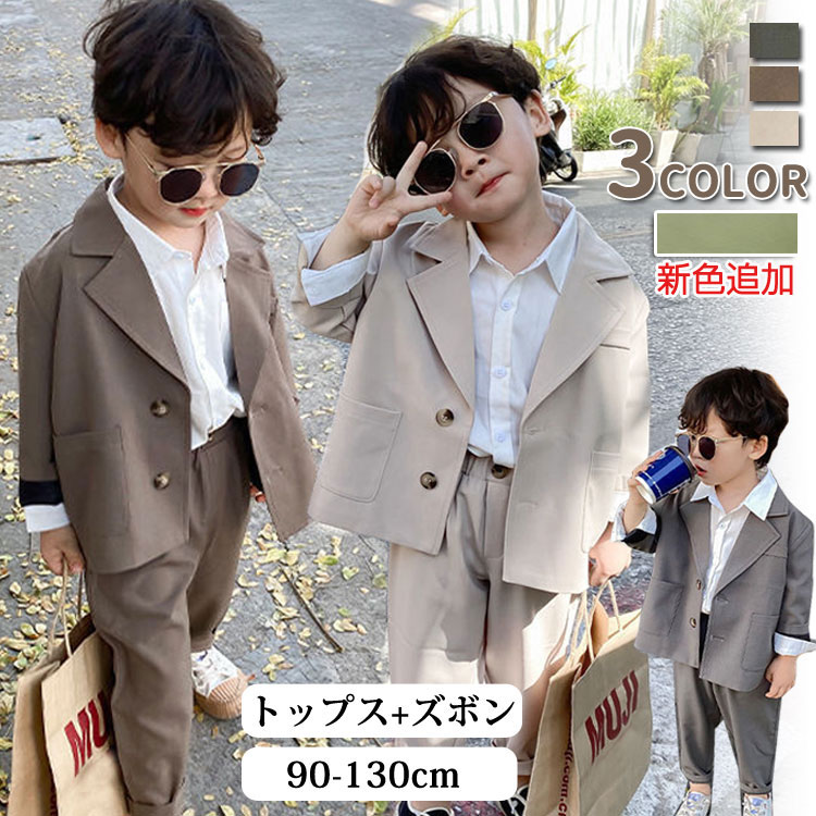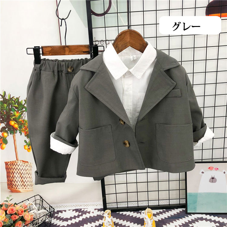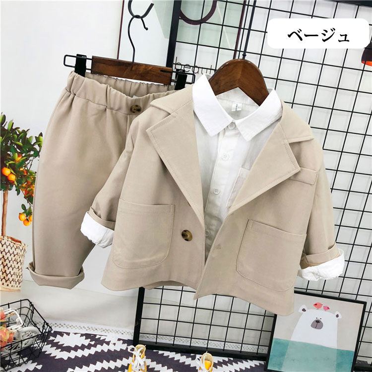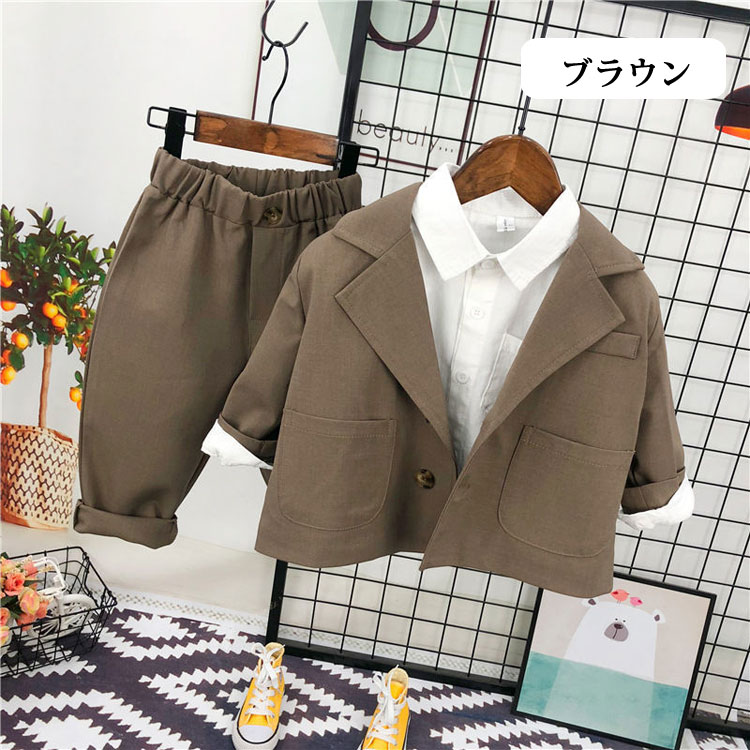 3点セット 子供服 フォーマルスーツ キッズ スーツ カジュアルセットアップ スーツ 豊富 ベージュ ブラウン グレー 90cm 100cm 110cm 120cm 130cm