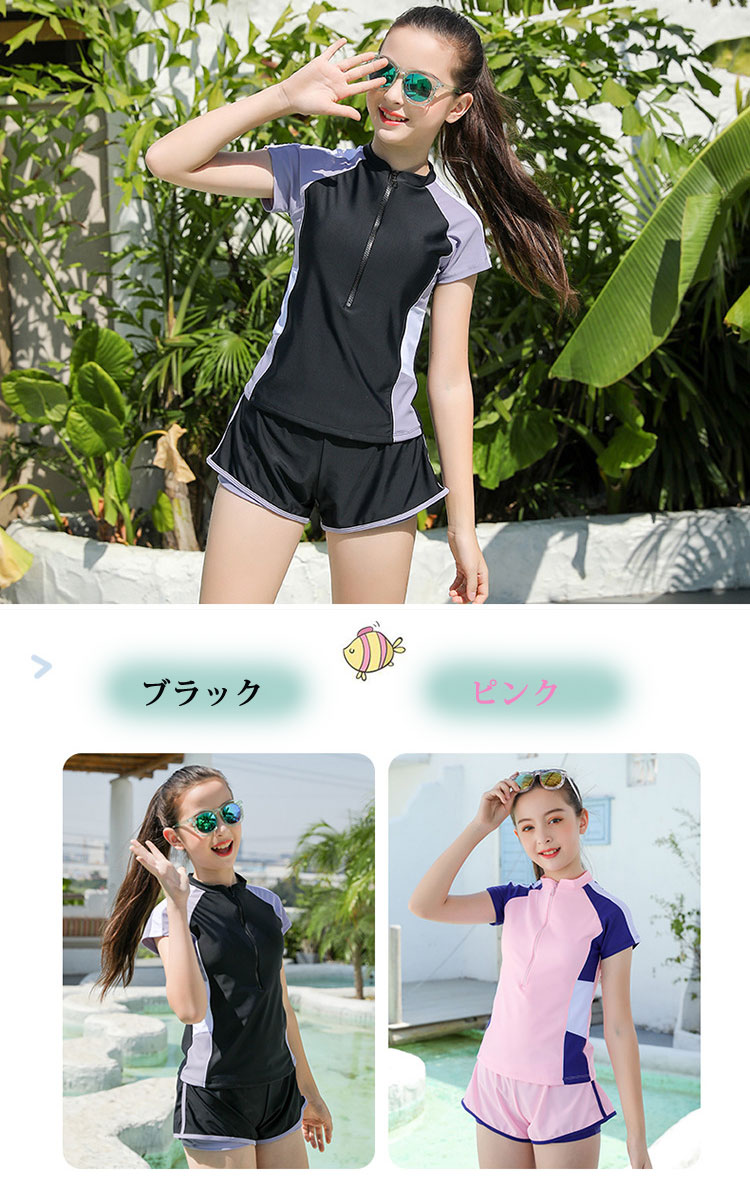 2点セット 子供 水着 キッズ 女の子 キッズ 水着 新登場! ブラック ピンク 140# 150# 160# L XL