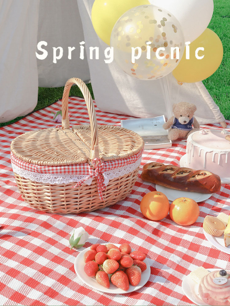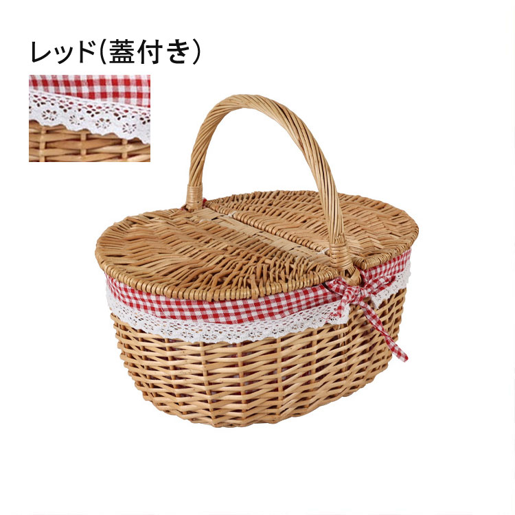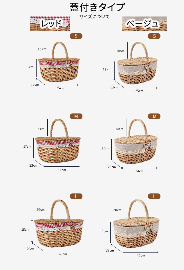 ピクニック バスケット かご かごバッ レッド(蓋付き) レッド(蓋なし) ベージュ(蓋付き) ベージュ(蓋なし) S M L