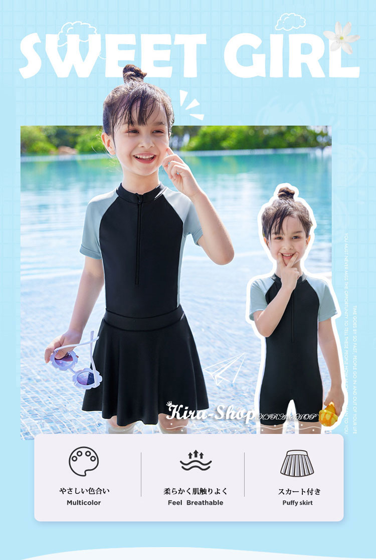 2点セット 女の子 水着 スクール水着 キッズ 水着 新登場! グリーン ホワイト L XL 2XL 3XL 4XL