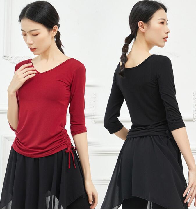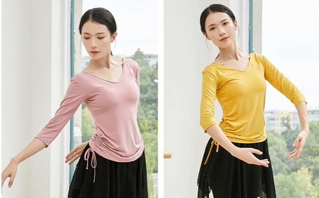 ダンス衣装レディース練習レッスンウエア 体操 ダンス 社交ダンス ウェア 特集 黒長袖 黒7分袖 ワイン長袖 ワイン7分袖 緑長袖 緑7分袖 紺長袖 紺7分袖 ピンク長袖 ピンク7分袖 イエロー長袖 イエロー7分袖 S M L XL 2XL 3XL 4XL