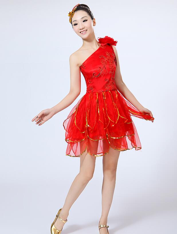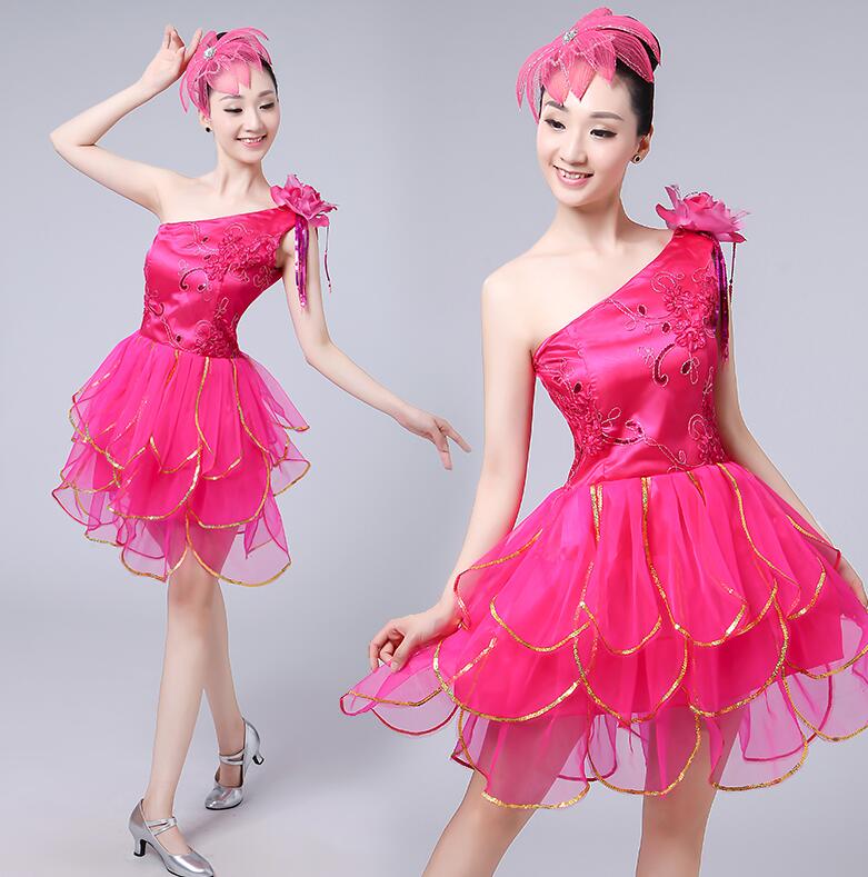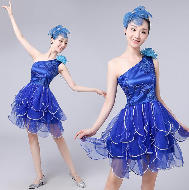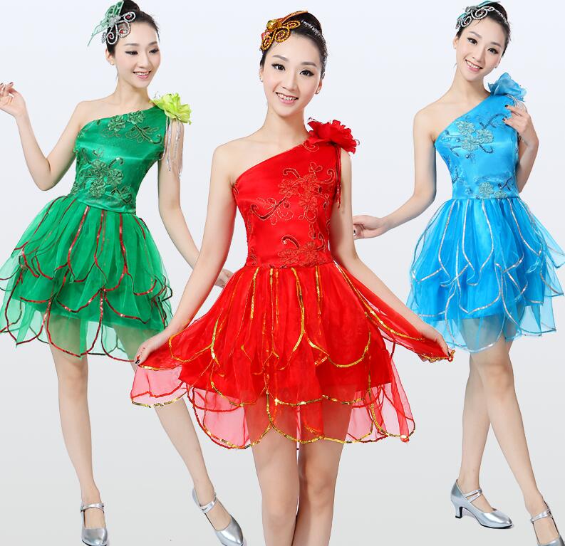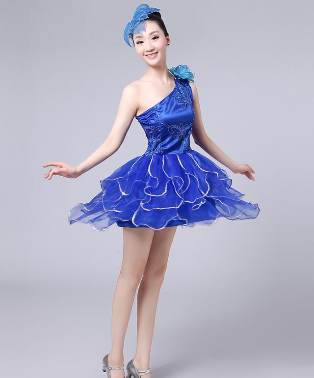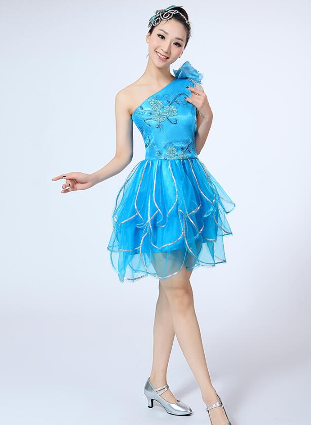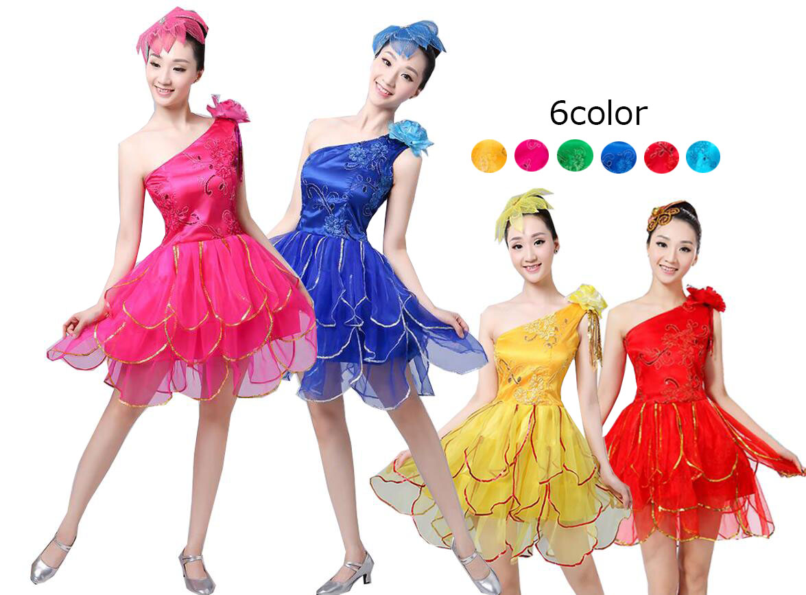 モダンダンス衣装きらきら舞台ステージ衣 ドレス 続々登場 S M L XL 2XL 3XL 赤 黄 ピンク ロイヤルブルー ライトブルー 緑