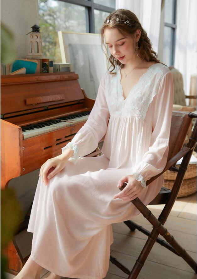 ロングパジャマ 3色 ワンピース パジ レディース ナイトウェア ルームウェア ネグリジェ 続々入荷中 M L XL 白 ピンク ライトブルー