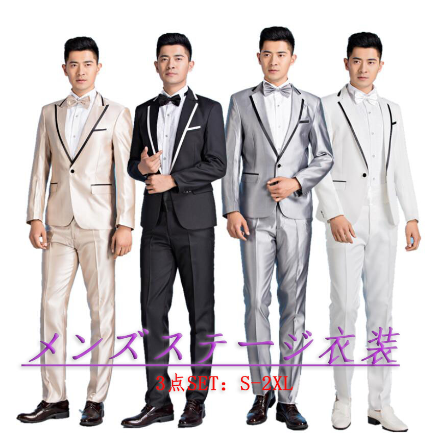 メンズ舞台ステージ衣装 カラースーツ3 スーツ セットアップ スーツ 通販 S M L XL 2XL グレー(黒縁取り) シャンパン(黒縁取り) 白(グレー縁取り) 白(黒縁取り) 黒(グレー縁取り) 黒(黒縁取り)