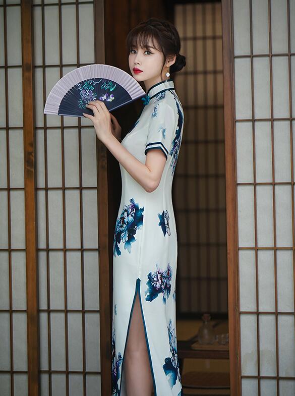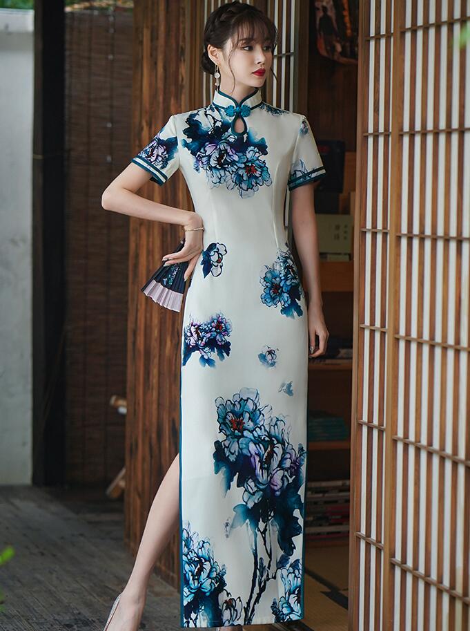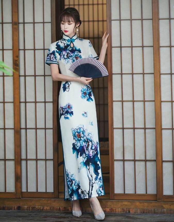 ロングチャイナドレス 半袖 ロング丈 レディースファッション 超目玉商品 M L XL 2XL 3XL 4XL