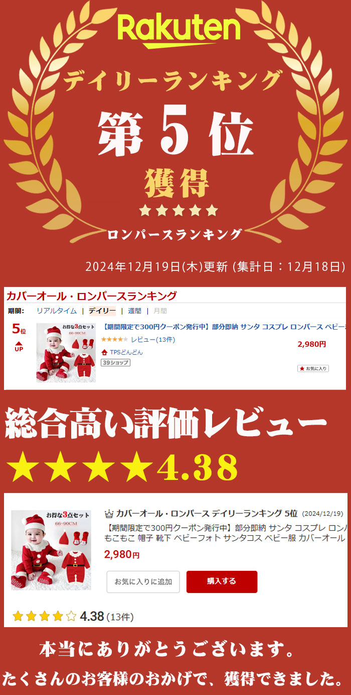 サンタ コスプレ ロンパース ベビー着 ベビー ベビー服 ファッション カバーオール ロンパース 特集 66cm 73cm 80cm 90cm