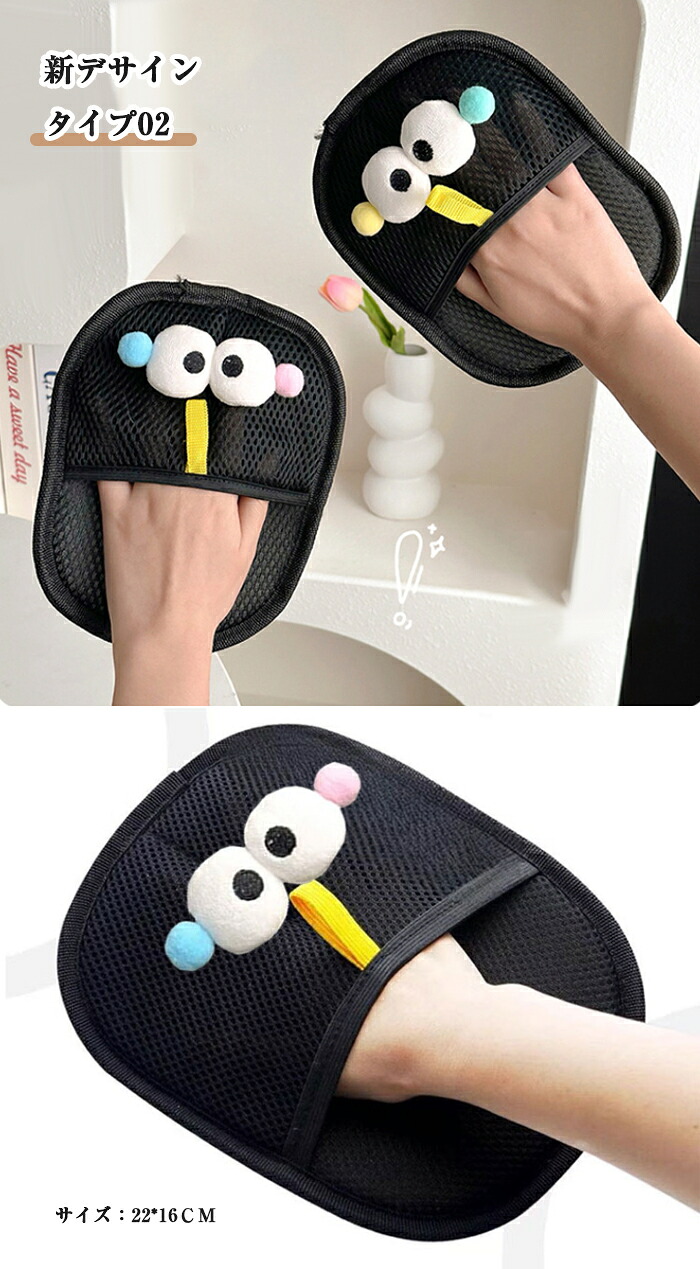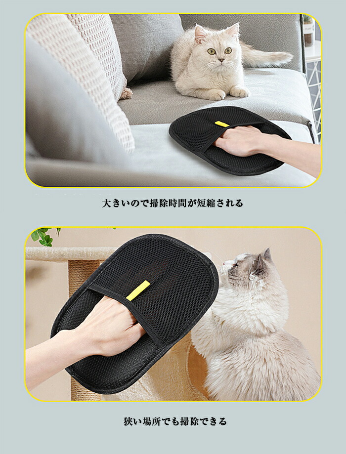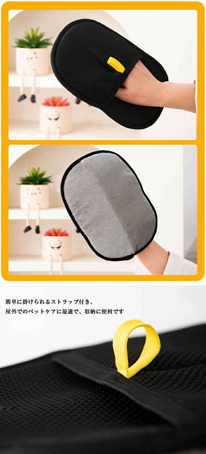 ペット用静電気除去手袋 抜け毛グローブ ブラック ブラック&イエロー【新】 タイプ02【可愛い目付き】 2枚セット【おすすめ】 1枚セット