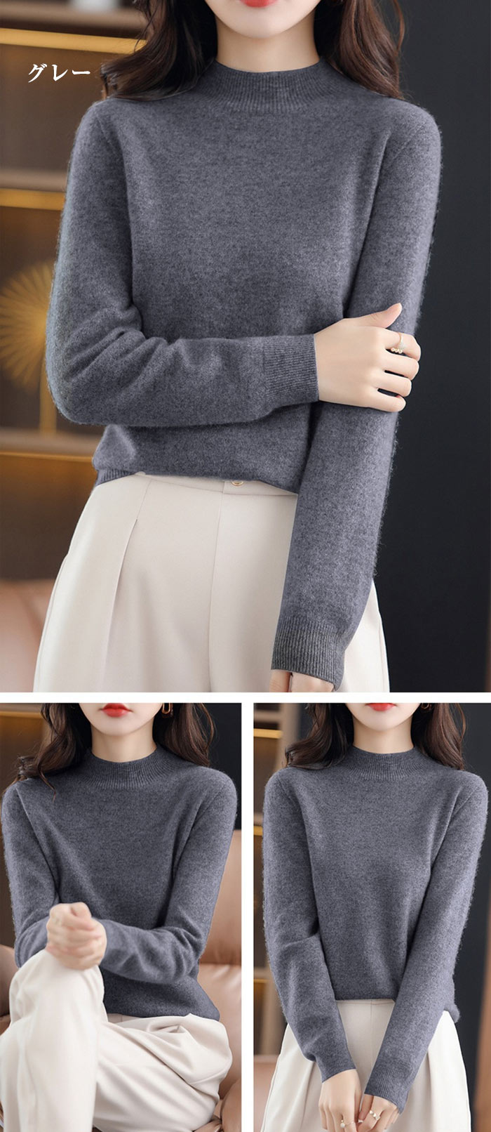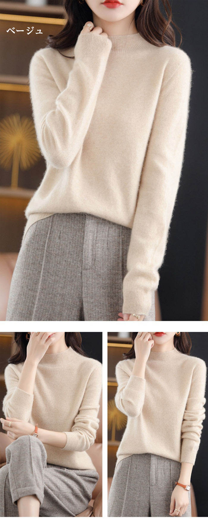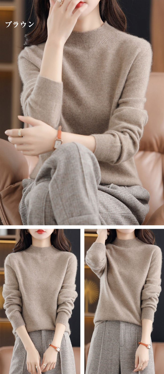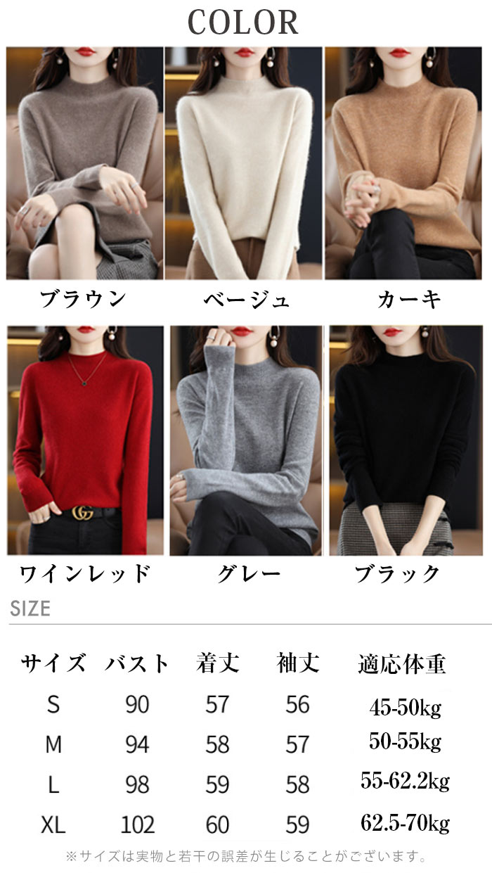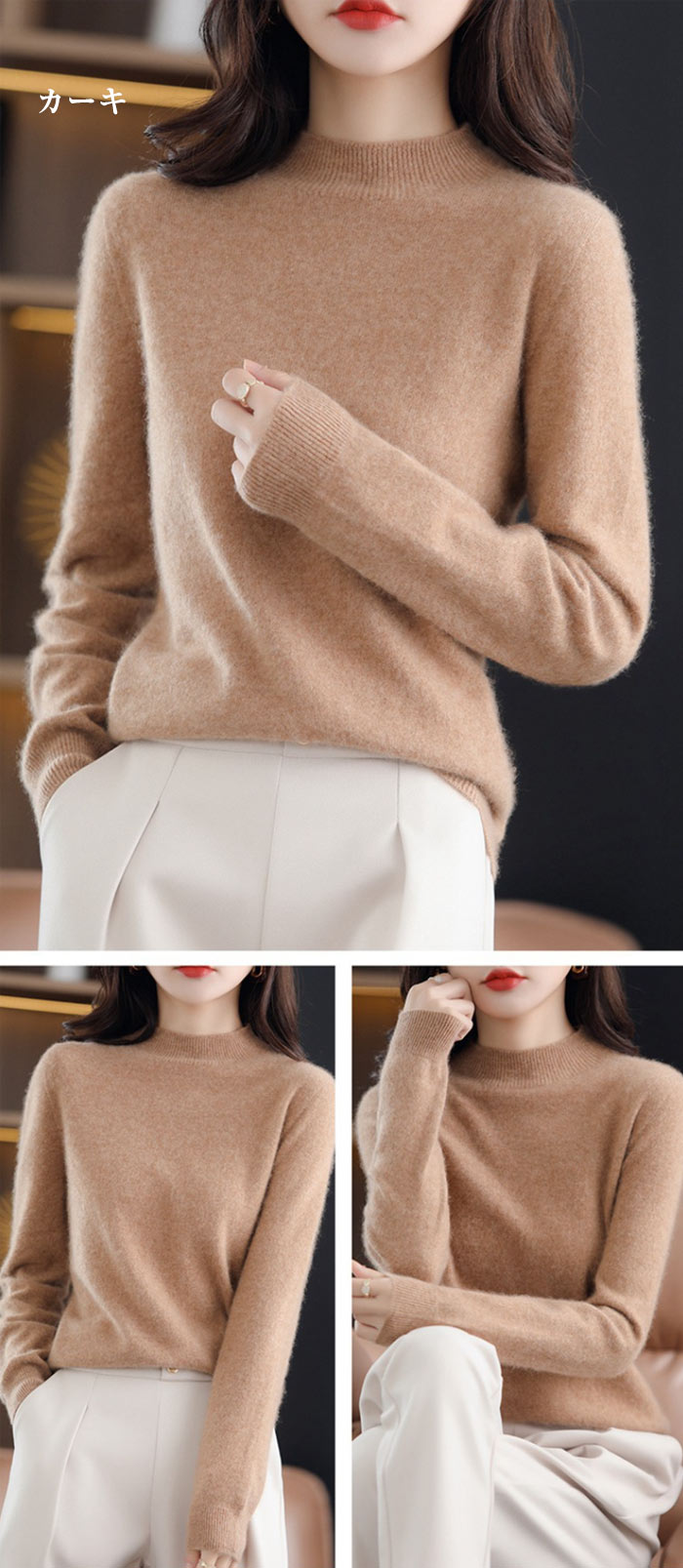 ウール100% ハイネック セーター トップス ニット セーター セーター 豊富 ブラウン ベージュ カーキ ワインレッド グレー ブラック S M L XL