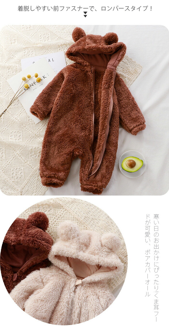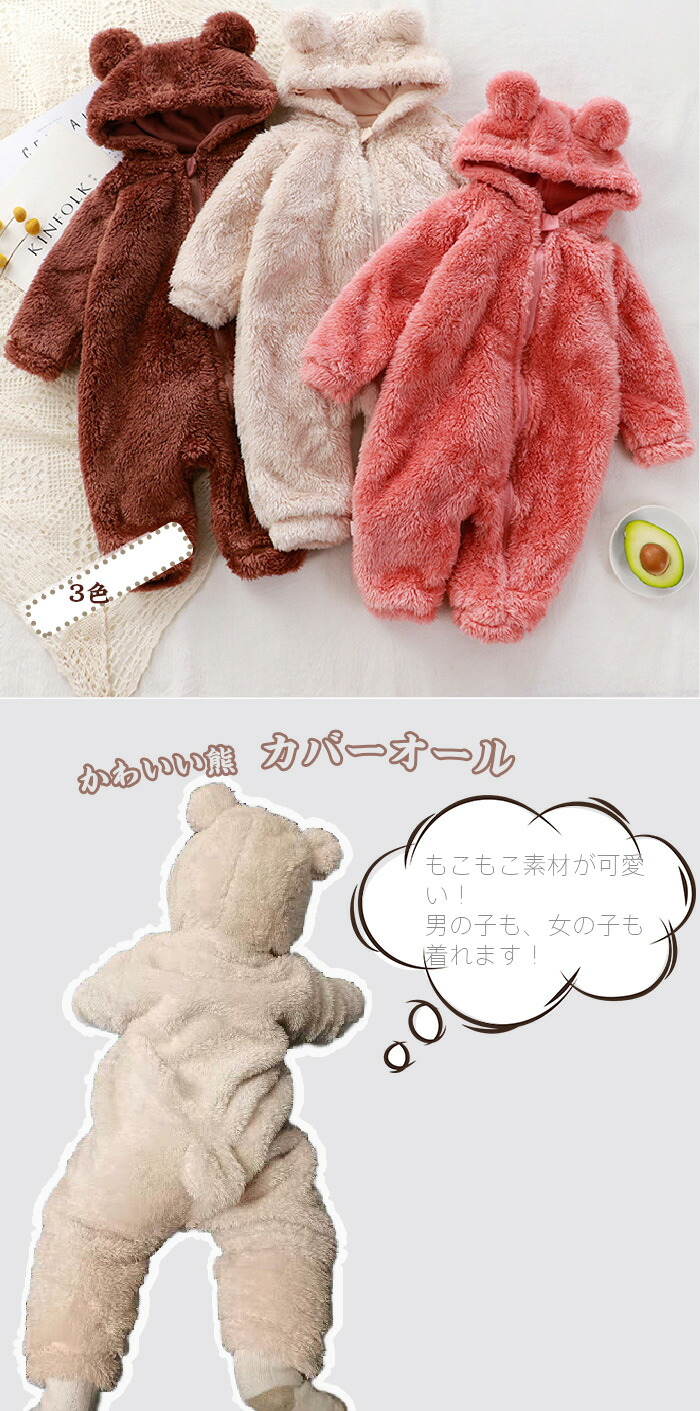 ベビー服 ロンパース 可愛い カバーオ ベビー ベビー服 ファッション おくるみ 通販 ブラウン ピンク オフホワイト 66CM 73CM 80CM