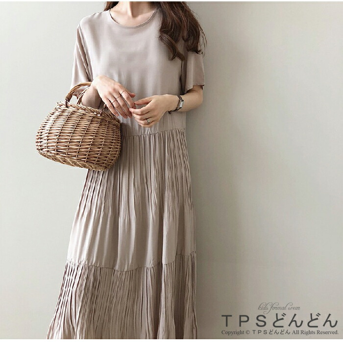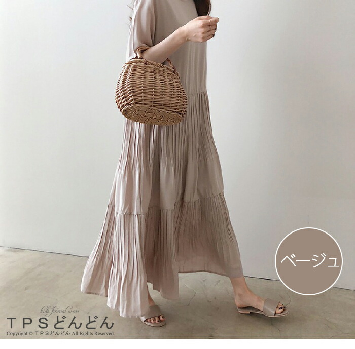 ロングワンピース 夏 半袖 ワンピース ワンピース 続々登場 ベージュ ブラック M L XL