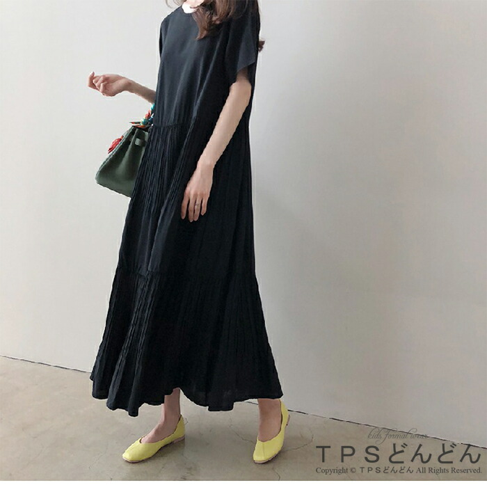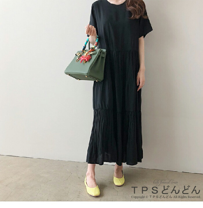 ロングワンピース 夏 半袖 ワンピース レディース ティアード Aライン マキシ ゆったり ナチュラル フレアシルエット 無地 体型カバー シンプル 上品 大人 通勤 パーティ 大きいサイズ 結 OL