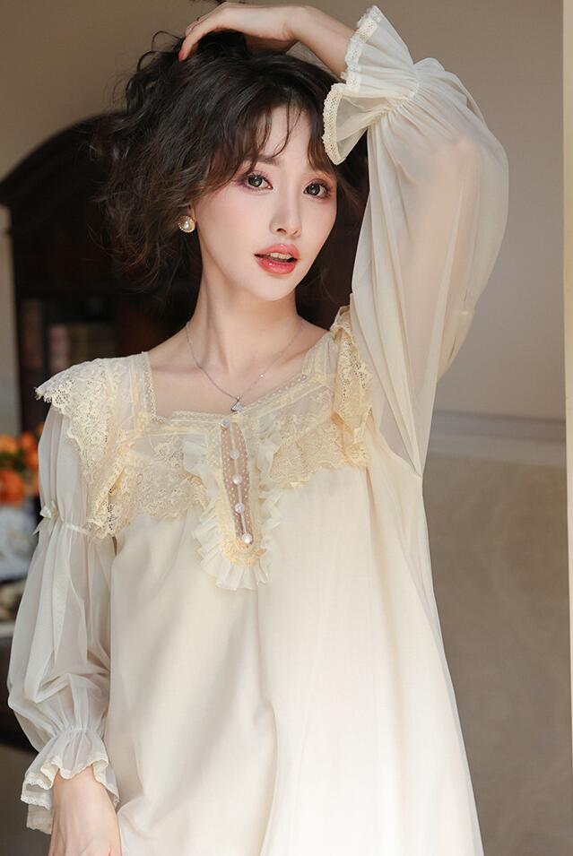 夏 パジャマ 長袖 ワンピース ナイト キッズ ベビー マタニティ 早い者勝ち M L XL ホワイト ベージュ