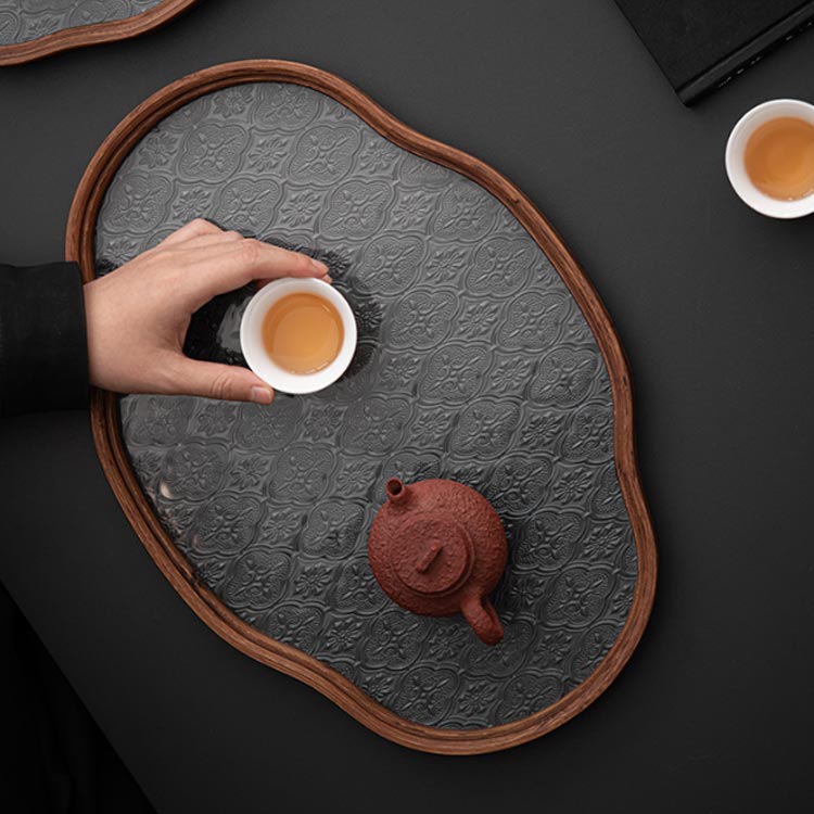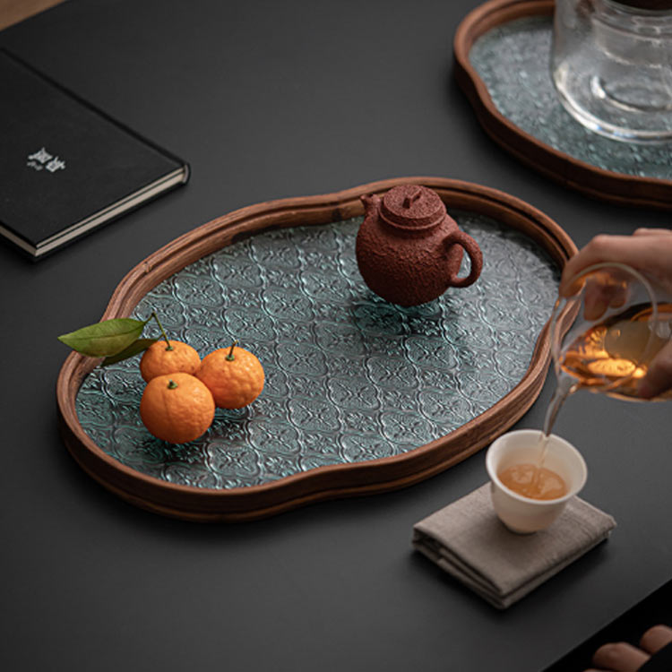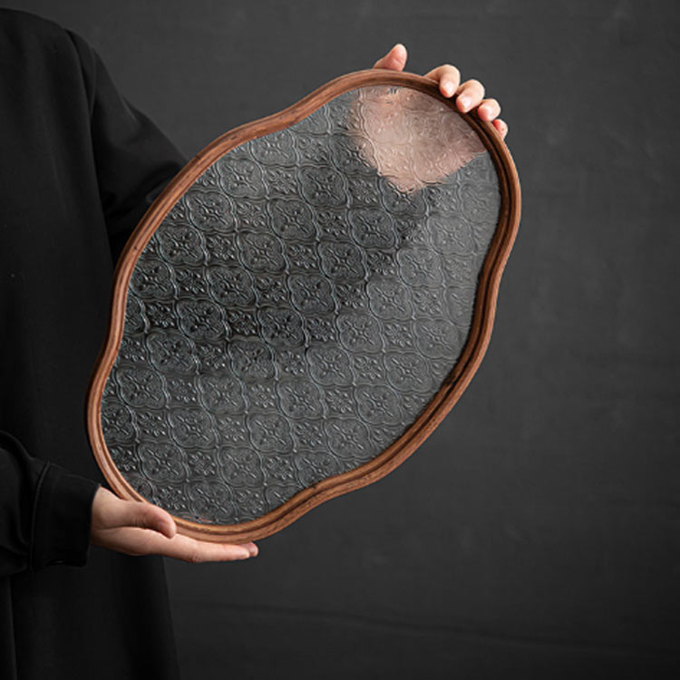花海棠トレー ガラス トレイ カフェト 食器 カトラリー グラス 食器 皿 プレート 早い者勝ち 透明ガラス グリーンガラス 小(29*20.5*2.2cm) 大(32.5*25.5*2.2cm)
