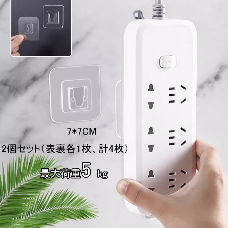 壁面収納 コンセント収納 ルーター収納 壁フックシール2個セット 壁 フック フックシール 超強力 透明タイプ 耐荷重5kg はがせる 穴開けない 賃貸 キッチン お風呂 バスルー 繰り返し使える