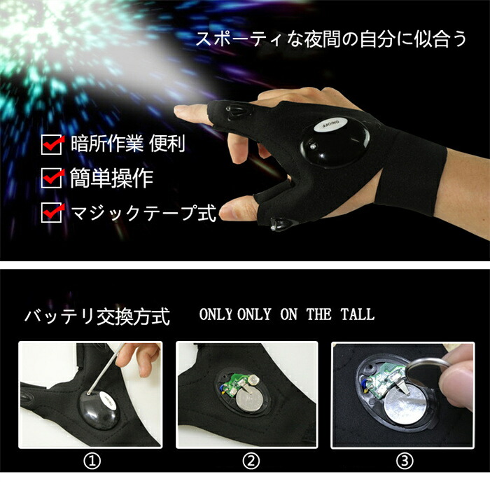夜釣り ライトグローブ 釣りグローブ 手元だけ明るい手袋 夜釣り用 手袋 LED手袋 釣り手袋
