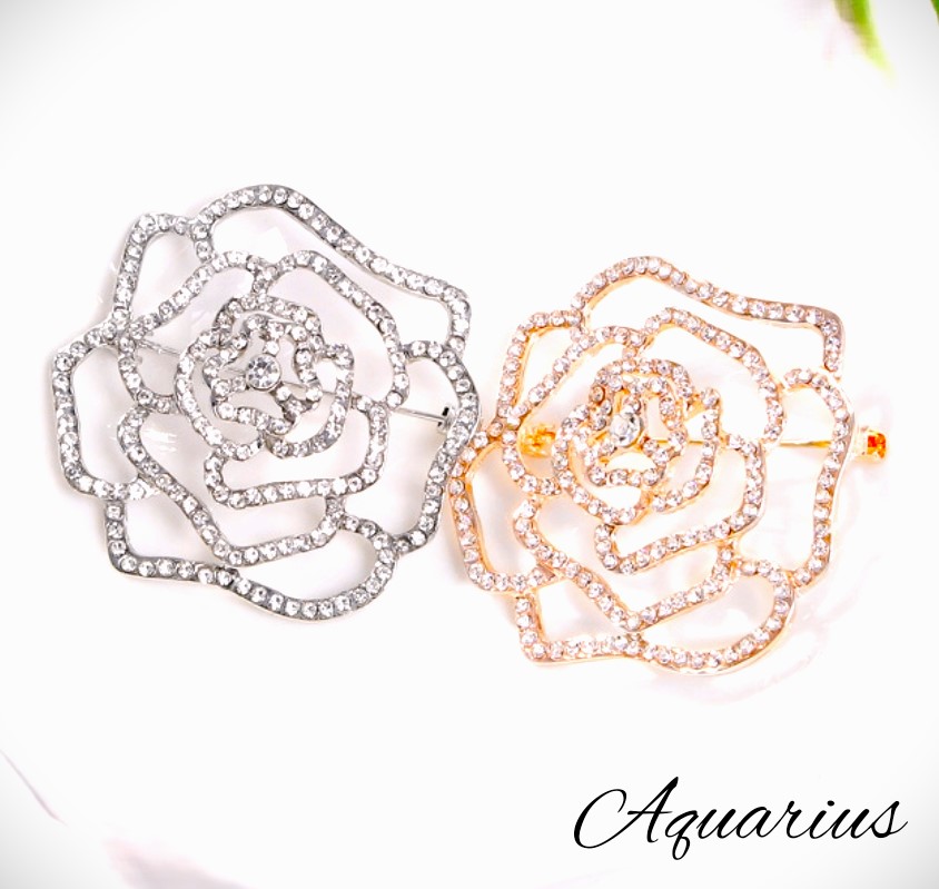 ローズ エレガント ブローチ クリスタ レディースジュエリー アクセサリー ブローチ 特集 シルバー ゴールド