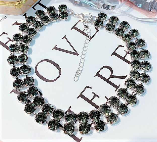 あえてブラックのストーンで華やかさが際立つ仕上がりにしたスタイリッシュなチョーカーです♪ブラックなのでどんな色にも合わせやすいのが一番のポイント!