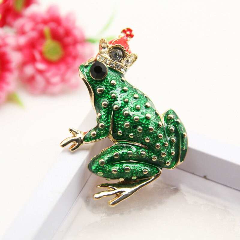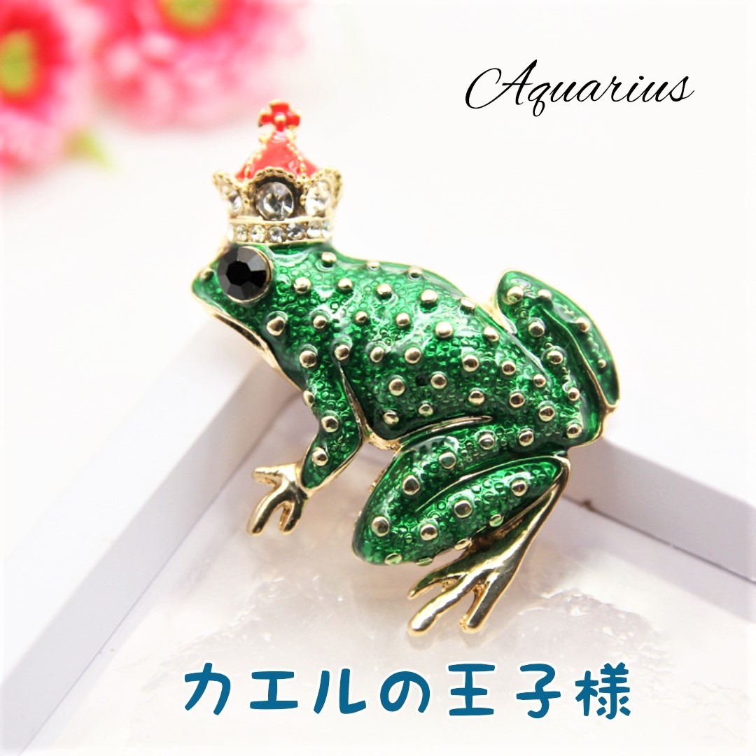 ラッキー アイテム 王冠 をかぶった カエル の 王子様 ジュエリー アクセサリー レディースジュエリー ブローチ