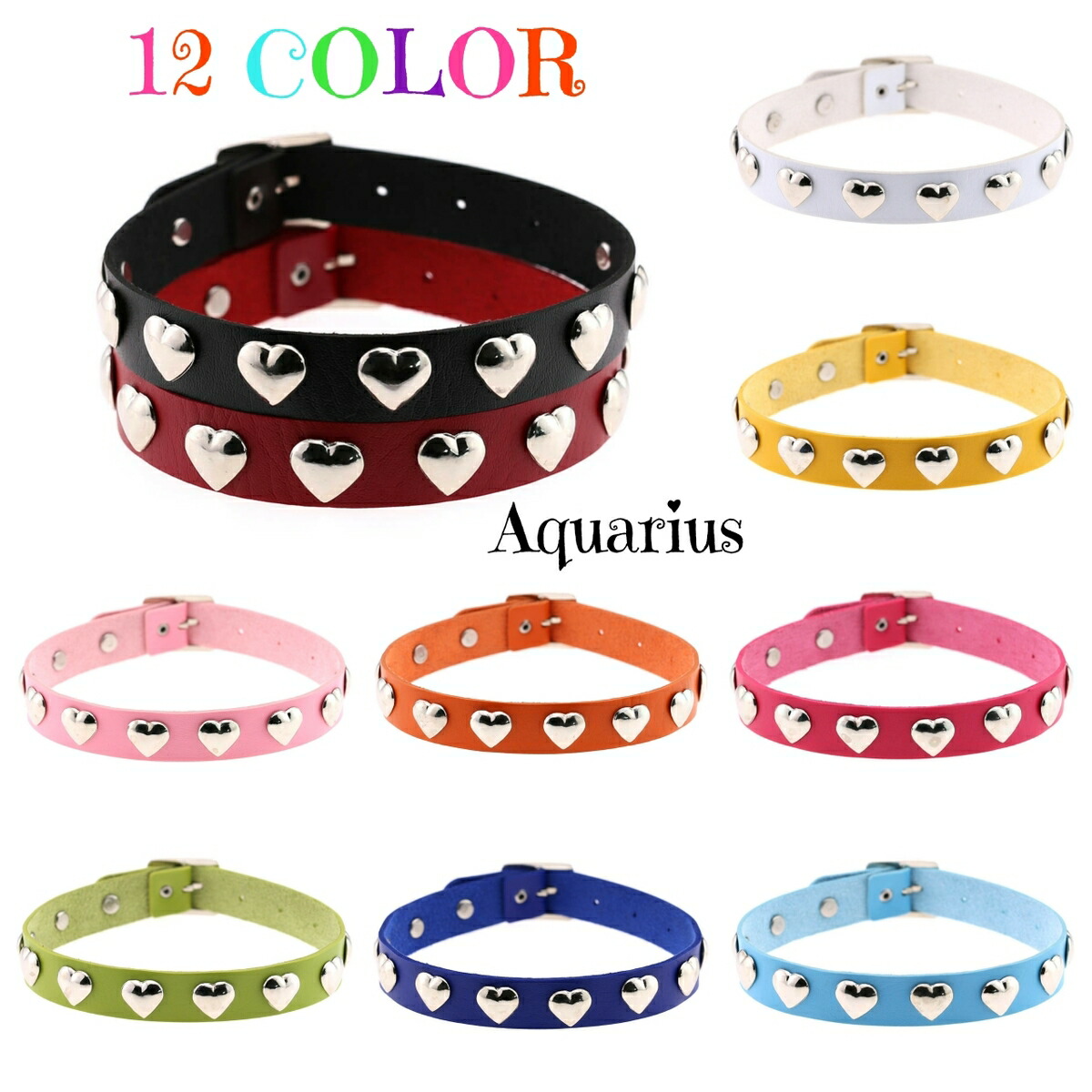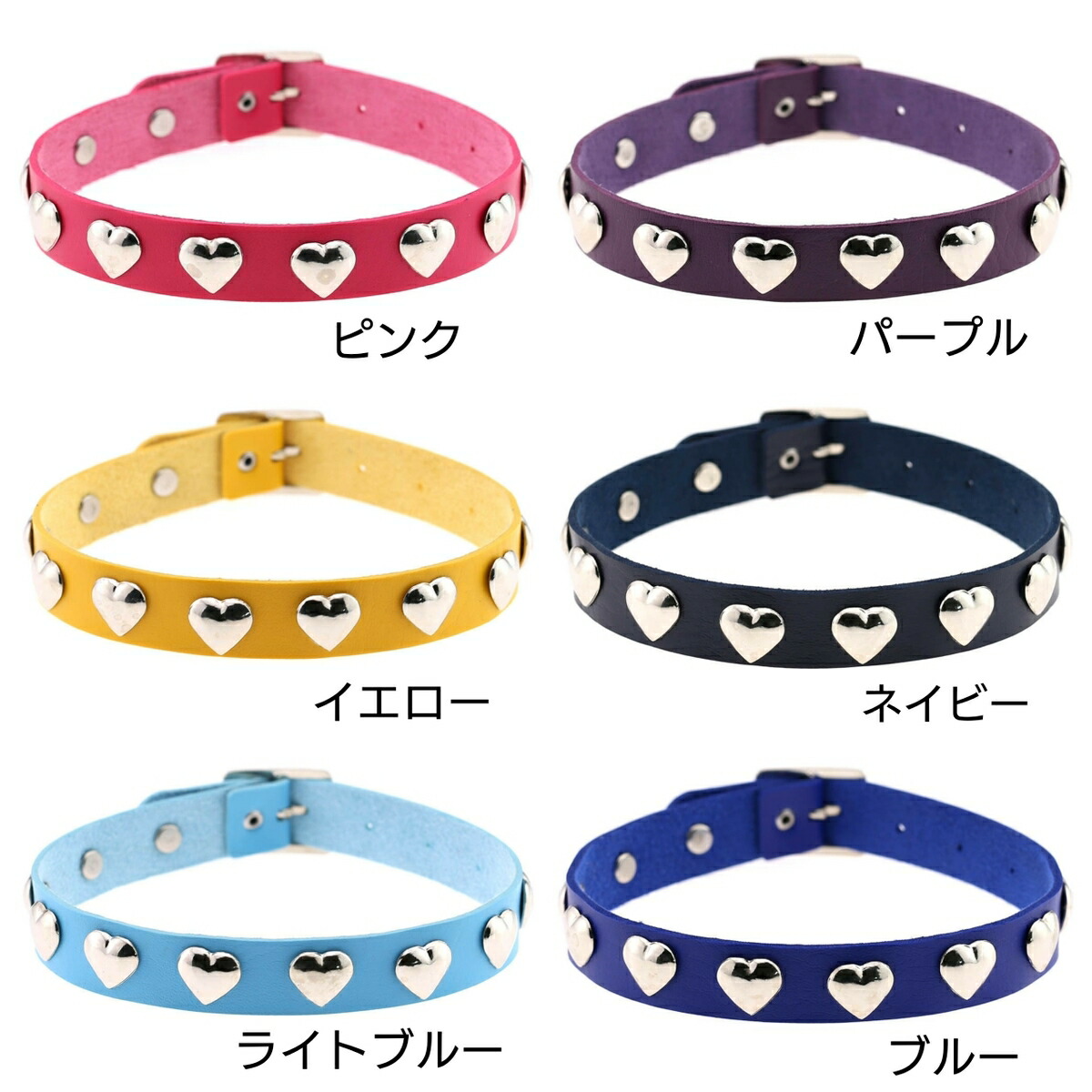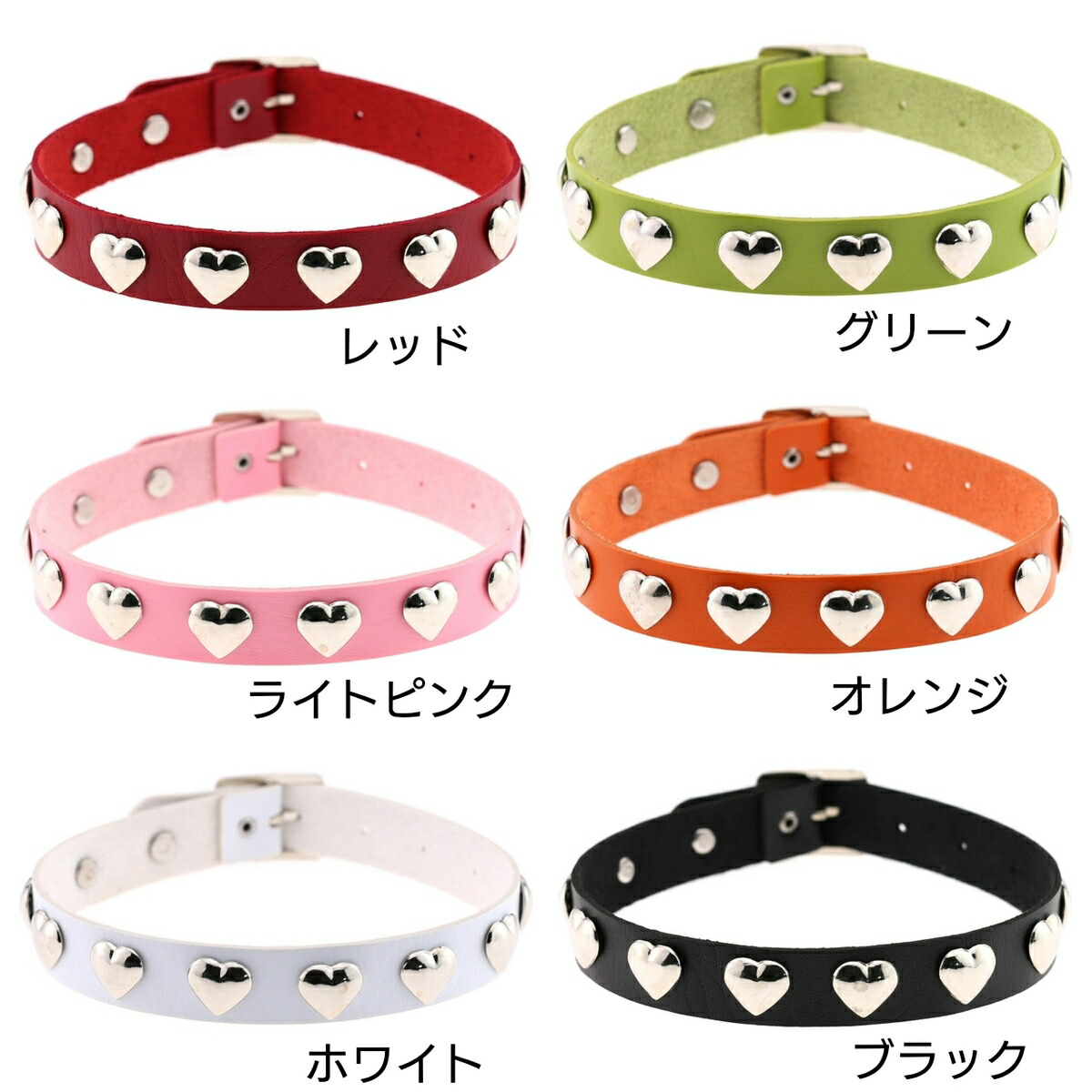 カラバリ ハート スタッズ レザー チ レディースジュエリー アクセサリー チョーカー 新作 レッド ライトピンク ホワイト グリーン オレンジ ブラック ピンク イエロー ライトブルー パープル ネイビー ブルー