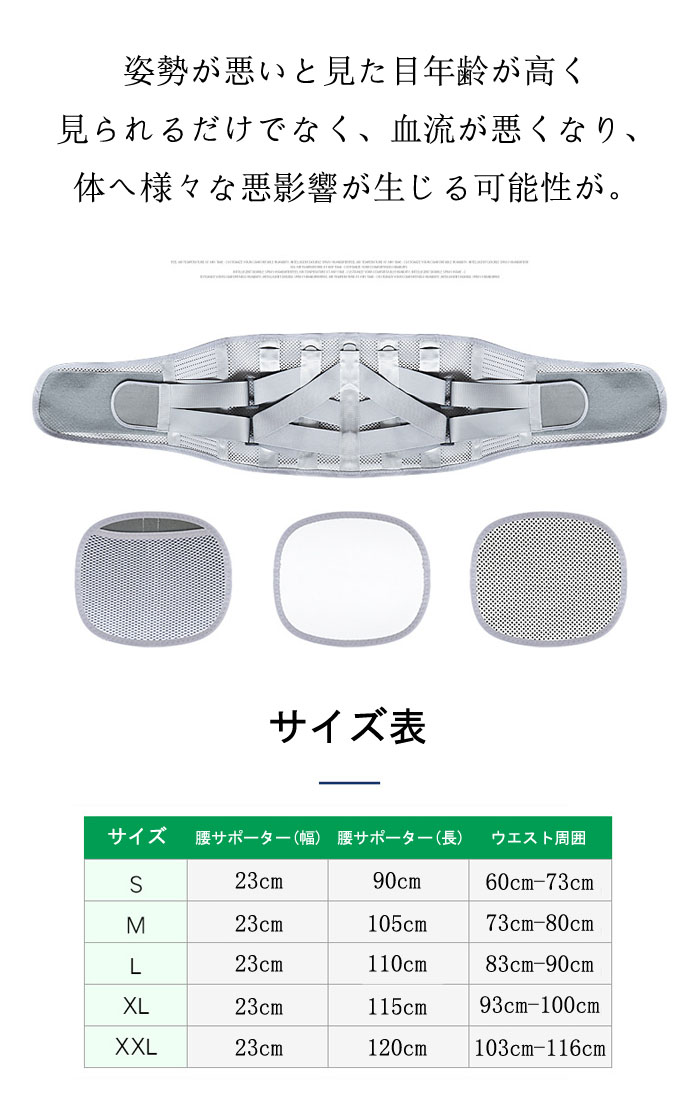 腰サポーター 腰ベルト 腰 腰用ベルト ブラック グレー S M L XL XXL