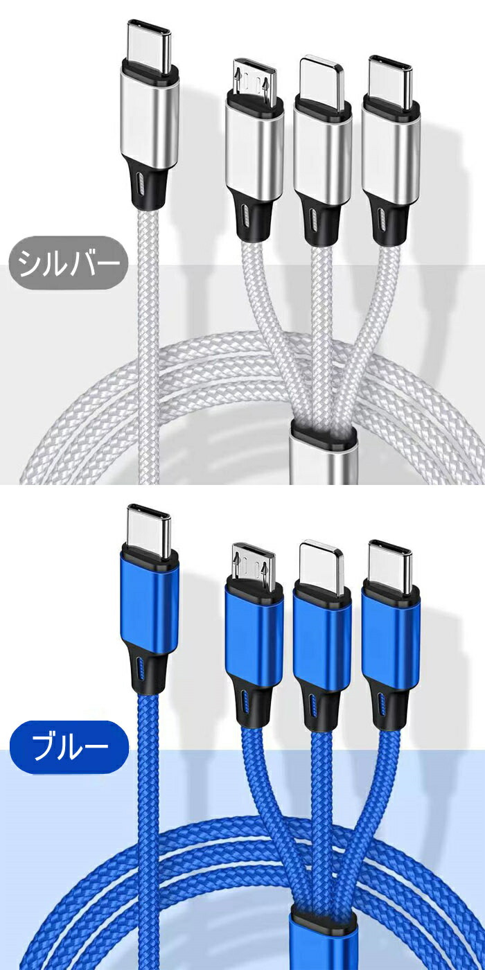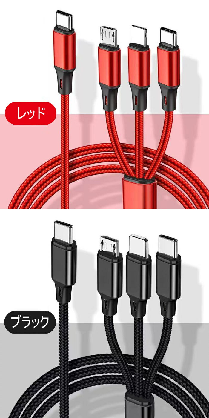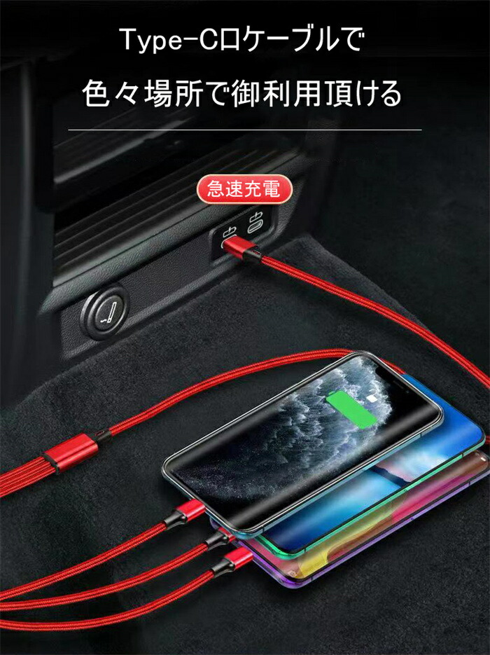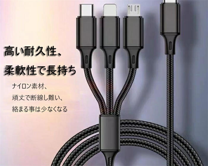 充電ケーブル 超急速充電 1.2m Type-C タイプC 3in1 Apple IOS Lightning MicroUSB スマトフォン typec機種 Android