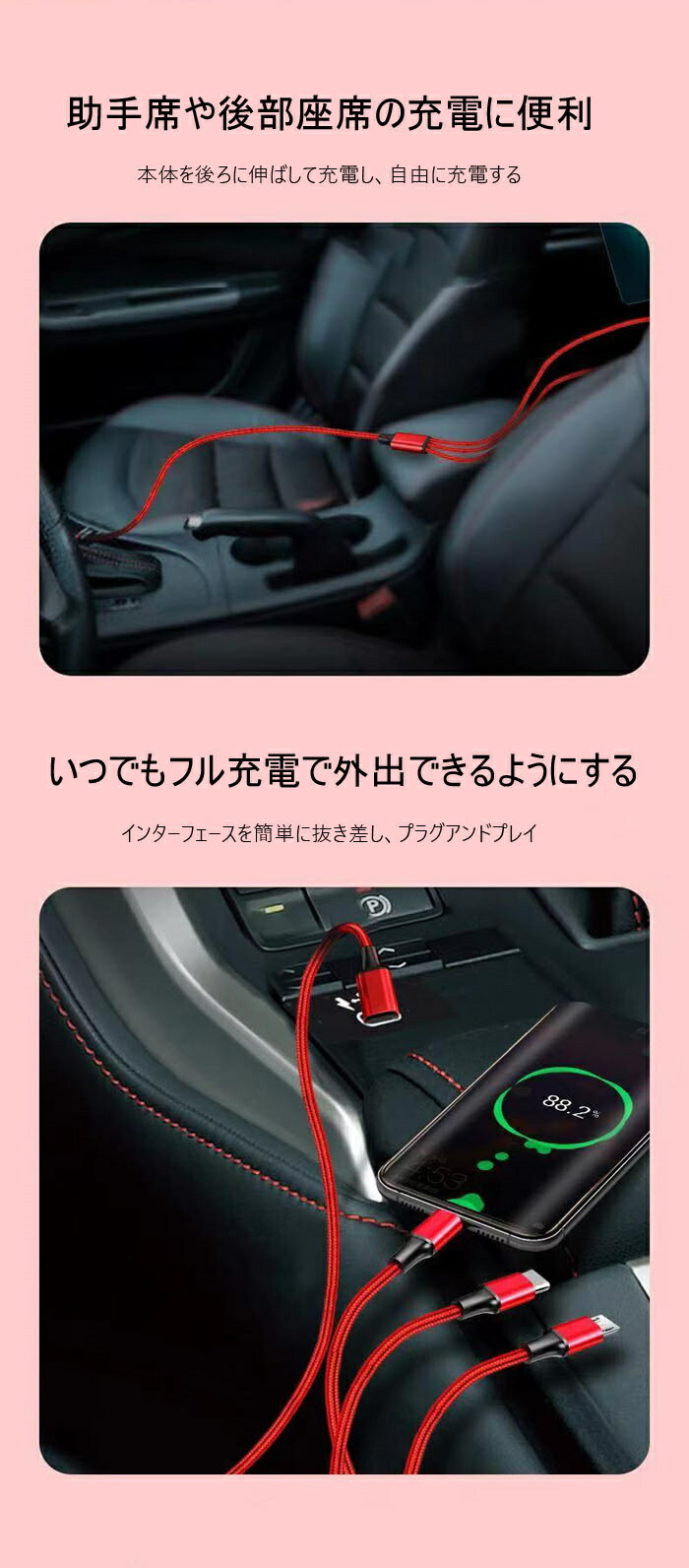 充電ケーブル 超急速充電 1.2m T スマートフォン タブレット用ケーブル 変換アダプター 早い者勝ち レッド ブラック ブルー シルバー 1点入 2点入