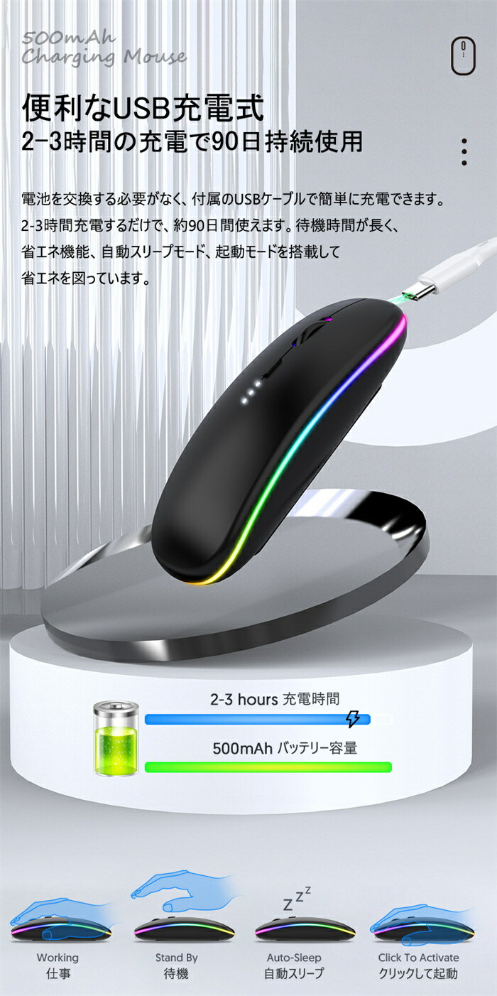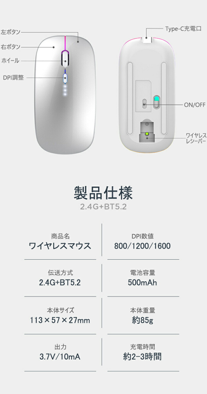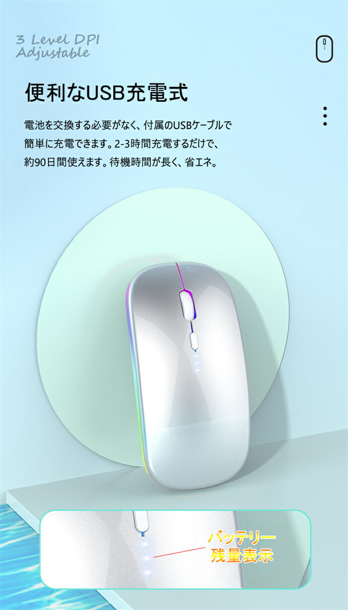 充電式 ワイヤレス 7色led 光学式 発光版(ブラック) 発光版(ホワイト) 発光版(グレー) 発光版(シルバー) 発光版(ゴールデン) 発光版(ローズゴールド) 非発光版(ブラック) 非発光版(ホワイト) 非発光版(グレー) 非発光版(シルバー) 非発光版(ゴールデン) 非発光版(ローズゴールド)