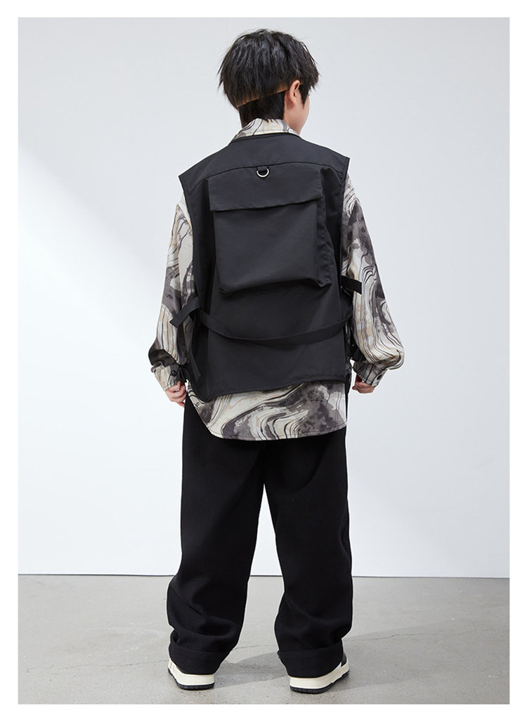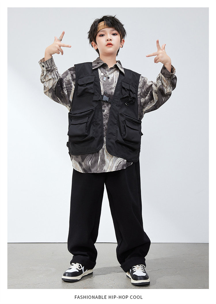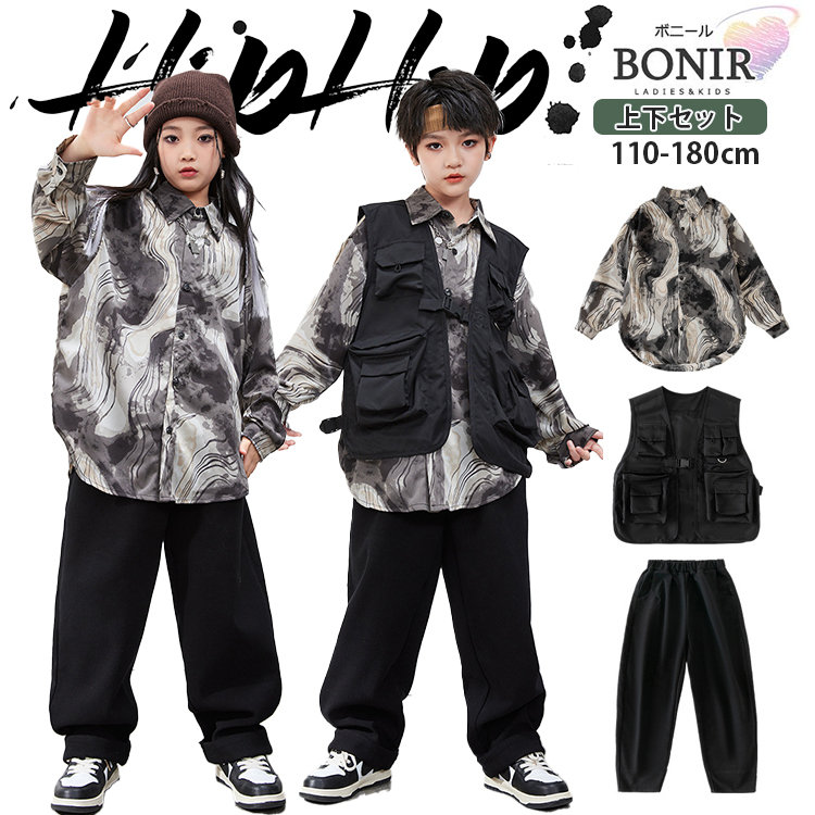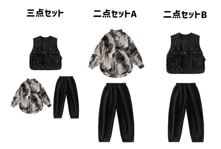 柄シャツ 黒 ベスト キッズダンス ヒ キッズ スーツ カジュアルセットアップ カジュアルパンツセット 続々登場 三点セット 二点セットA 二点セットB 柄シャツ 110 120 130 140 150 160 170 180
