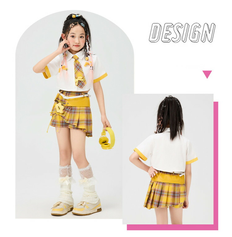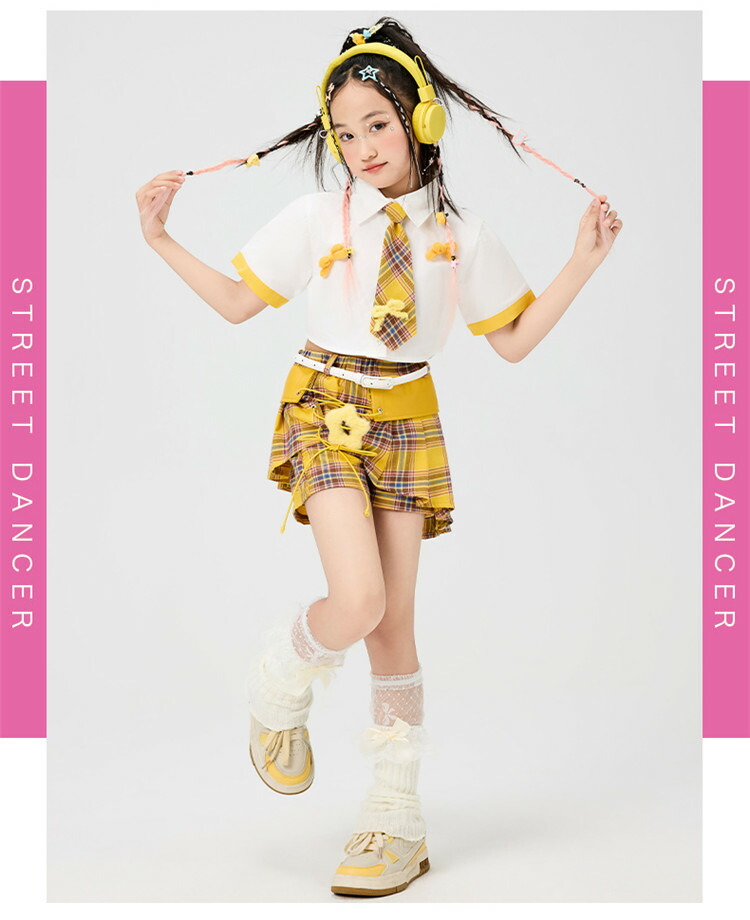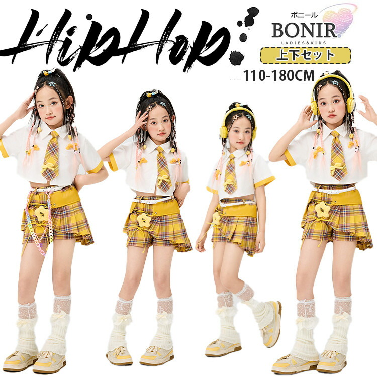 可愛い 応援団 hiphop 団体服 キッズ ベビー マタニティ 新作 四点セット 六点セット シャツ+ネクタイ スカート+ベルト 110 120 130 140 150 160 170 180
