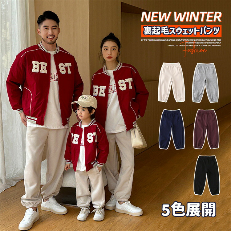 親子お揃い スウェットパンツ 長ズボン オフホワイト グレー ネービー ワインレッド ブラック 80 90 100 110 120 130 140 150 S M L XL 2XL 3XL