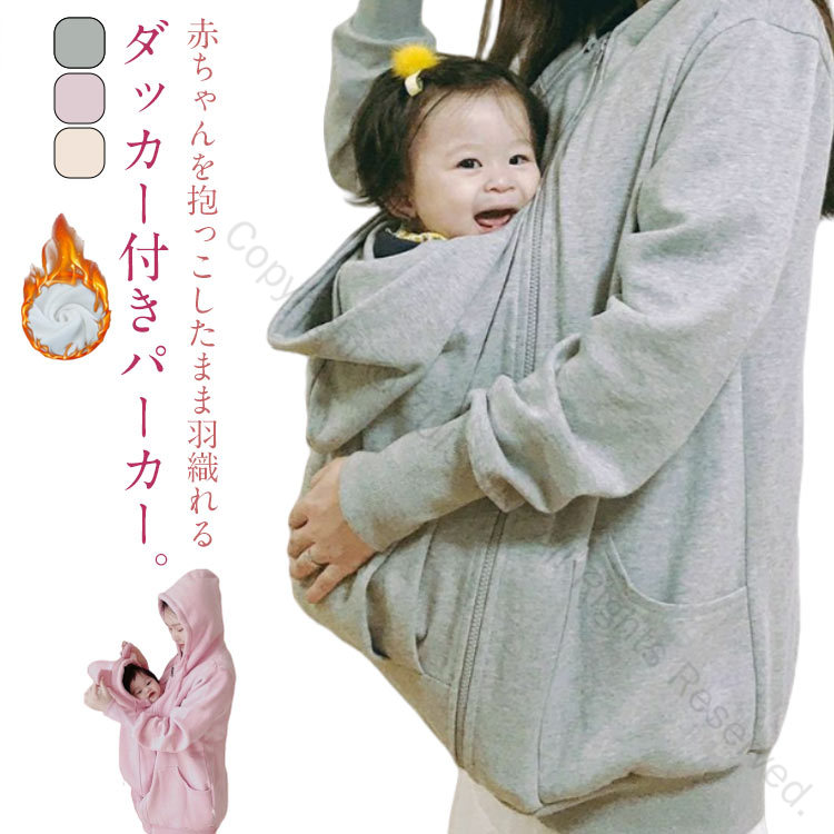 兼用 ママコート 可愛い だっこ 防寒 対応 厚手 ロングパーカー 裏起毛 レディース メンズ 抱っこ紐パーカー 産前産後 ダッカー付き まま アウター ジャケット 抱っこ あったか もこも パーカー
