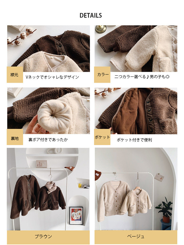 キッズ ボアコート 韓国子供服 オシャ キッズ コート ジャケット 続々登場 ブラウン ベージュ 80 90 100 110 120 130 140 大人フリー