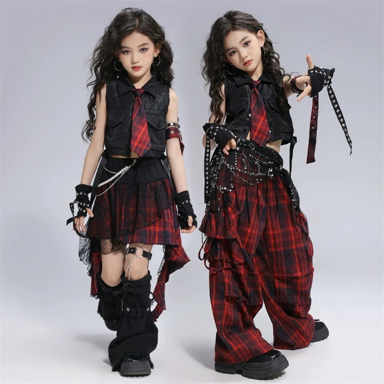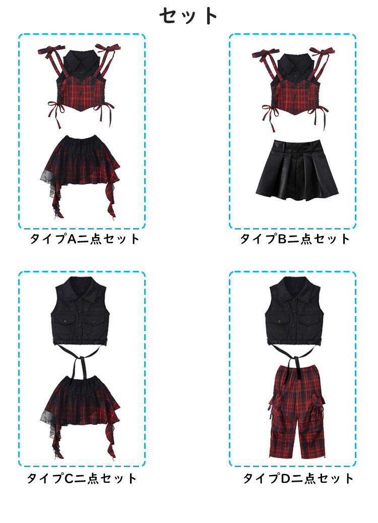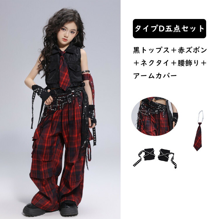 キッズ ダンス衣装 チェック柄 セット キッズ ベビー マタニティ 新作 赤トップスのみ 黒トップスのみ 赤ズボンのみ チェック柄スカートのみ 黒スカートのみ タイプA二点セット タイプB二点セット タイプC二点セット タイプD二点セット タイプA三点セット タイプB三点セット タイプC四点セット タイプD四点セット タイプA六点セット タイプB五点セット タイプC六点セット タイプD五点セット 110 120 130 140 150 160 170 180