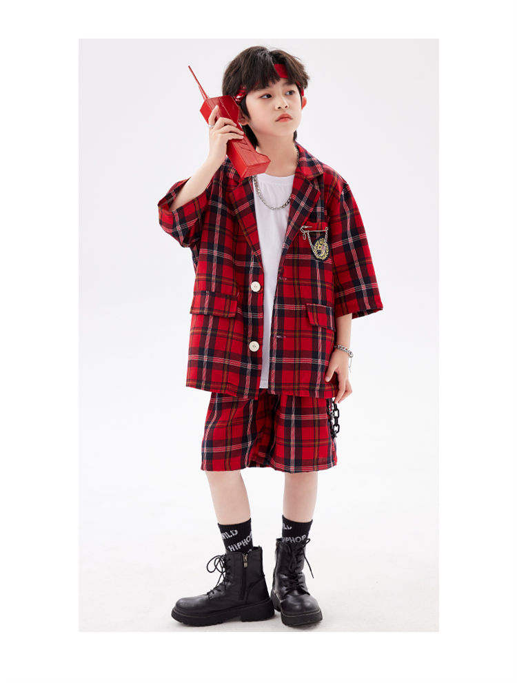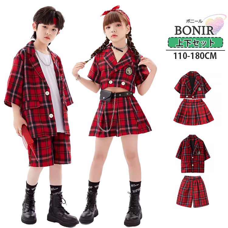 キッズ ダンス衣装 チェック 赤 ヒッ キッズ スーツ カジュアルセットアップ カジュアルパンツセット 早い者勝ち 110 120 130 140 150 160 170 180 男の子セット 女の子セット