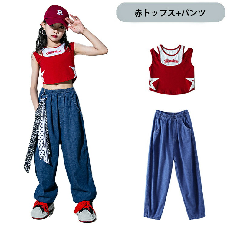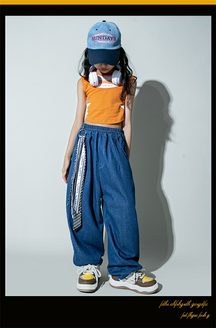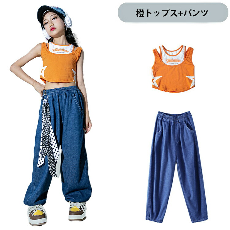 橙 赤 タンクトップ キッズ ダンス キッズ スーツ カジュアルセットアップ カジュアルパンツセット 早い者勝ち 橙トップス 赤トップス デニムパンツ 橙トップス+パンツ 赤トップス+パンツ 110 120 130 140 150 160 170 180