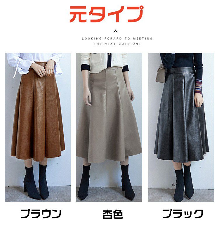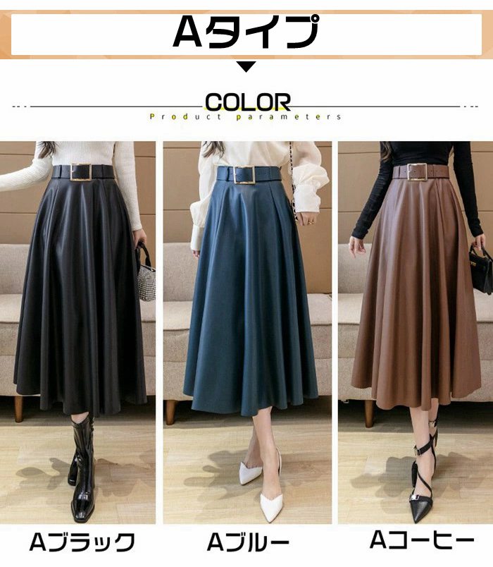 レザースカート ボトムス ロングスカー レディースファッション 通販 元タイプ-ブラック 元タイプ-ブラウン 元タイプ- 杏色 Aブラック Aコーヒー Aブルー S M L