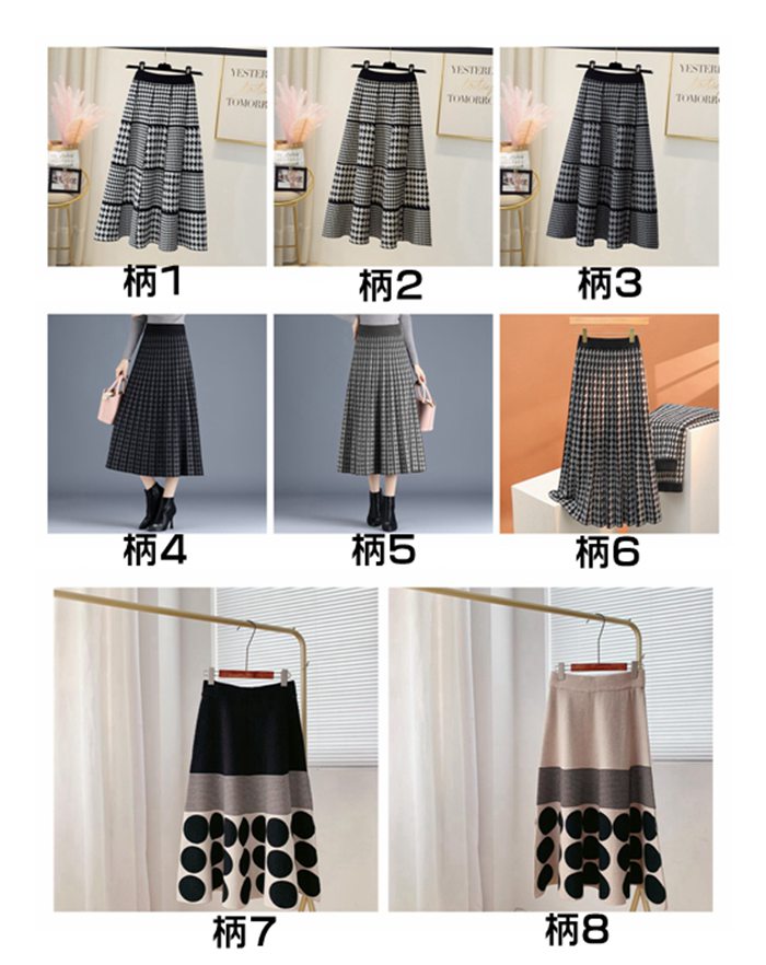ニットスカート レディース ロング丈ス レディースファッション 通販 グリーン ブルー オフホワイト 柄1 柄2 柄3 柄4 柄5 柄6 柄7 柄8