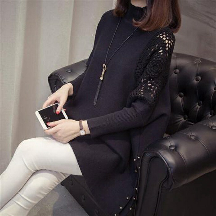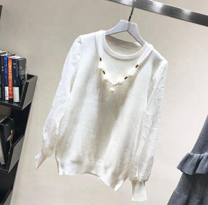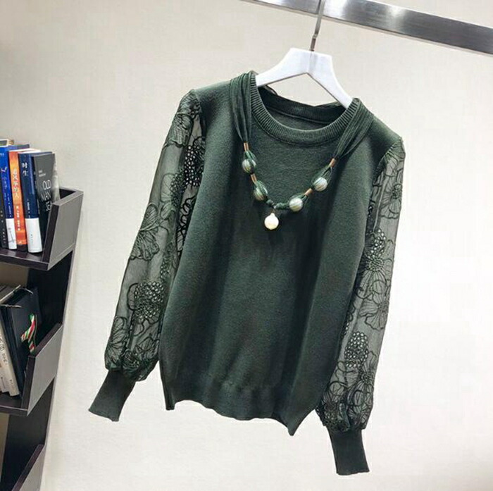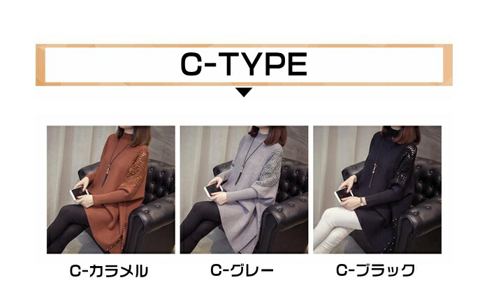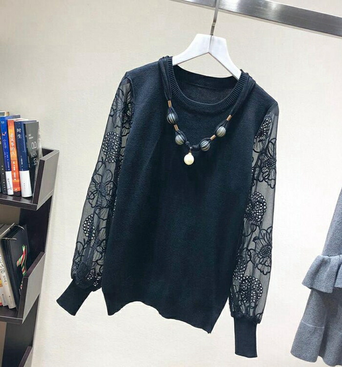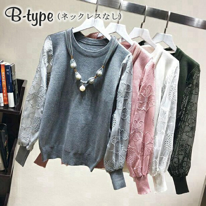 袖レース ニット セーター ニットソー トップス ニット セーター セーター 豊富 A-ブラック A-ホワイト A-グレー A-カーキ A-ピンク A-ネイビー B-ブラック C-カラメル C-グレー C-ブラック