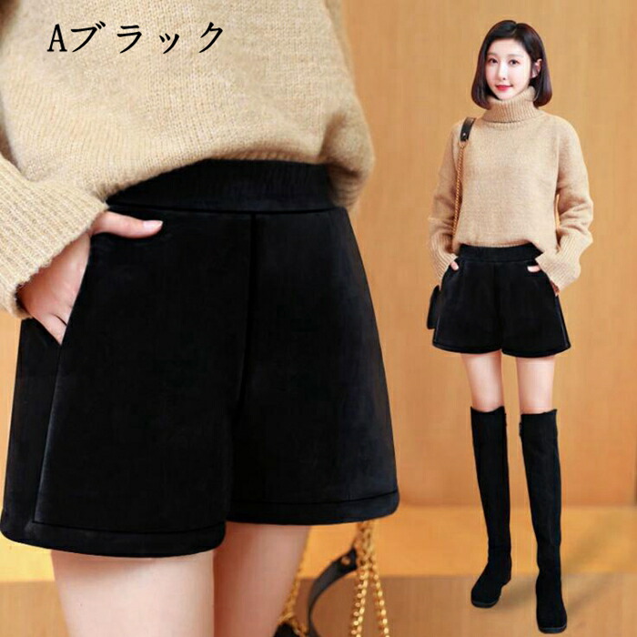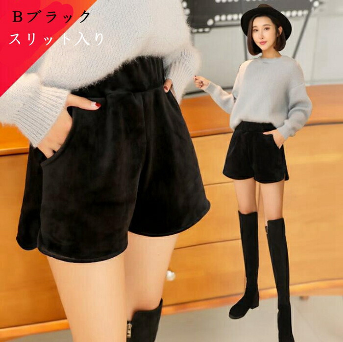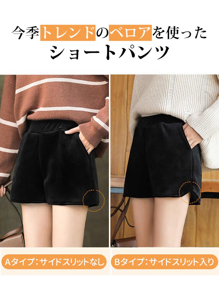 ショートパンツ 冬 ベロアパンツ レデ ボトムス パンツ 超目玉商品 Aブラック Bブラック S M L XL 2XL