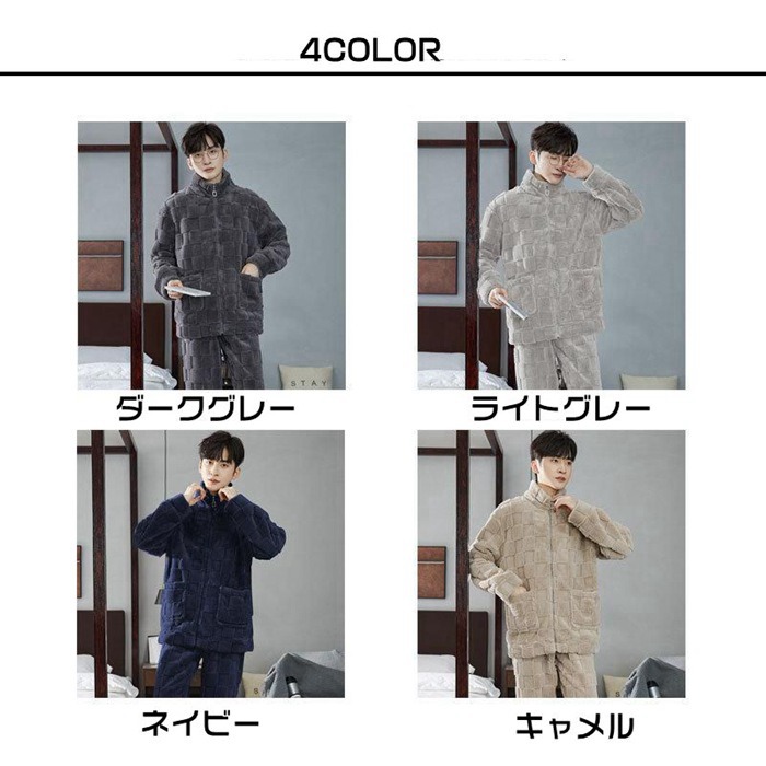 パジャマ メンズ ルームウェア 冬用 メンズ ナイトウェア ルームウェア パジャマ 続々入荷中 ダークグレー ライトグレー ネイビー キャメル L XL 2XL 3XL