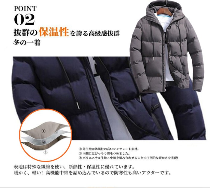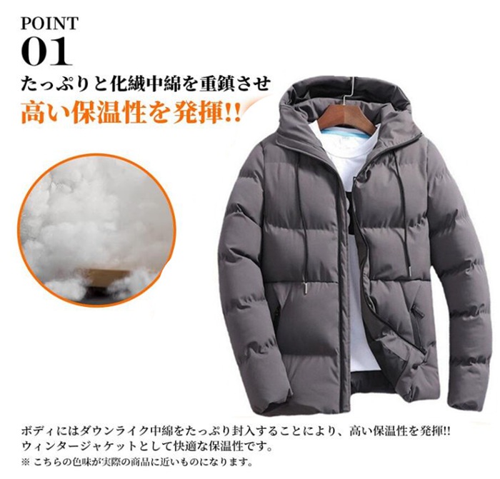 中綿ジャケット 中綿コート メンズ ミ コート ジャケット 新作 ブラック ネイビー ダークグレー ワイン XL(日本M相当) 2XL(日本L相当) 3XL(日本2L相当) 4XL(日本3L相当) 5XL(日本4L相当)