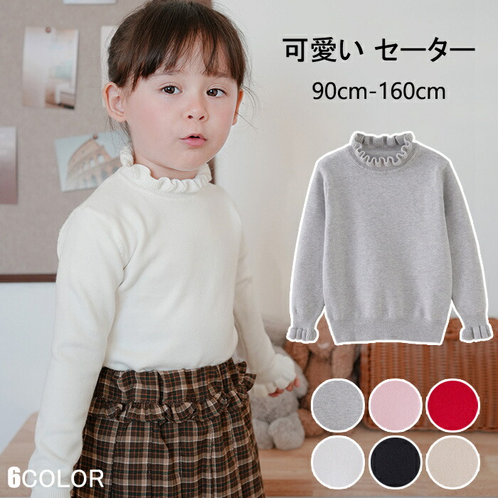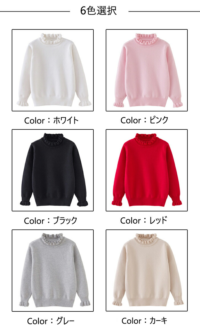 タートルネック ニット 子供服 女の子 キッズ ベビー マタニティ 新登場! ホワイト ピンク ブラック レッド グレー カーキ 90 100 110 120 130 140 150 160