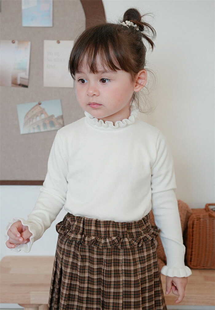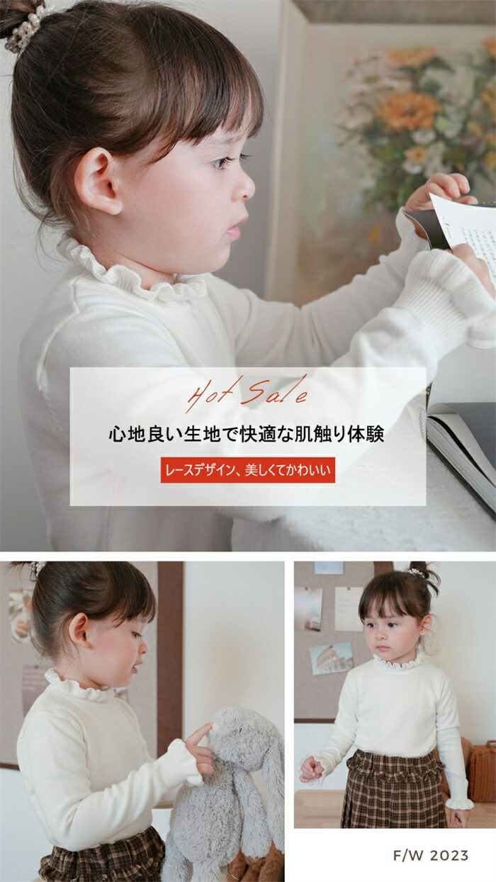 タートルネック ニット 子供服 女の子 キッズ 可愛い かわいい リブニット ハイネック リブ タートルニット インナー セーター ジュニア お洒落 秋冬 カジュアル おしゃれ フリル 春秋